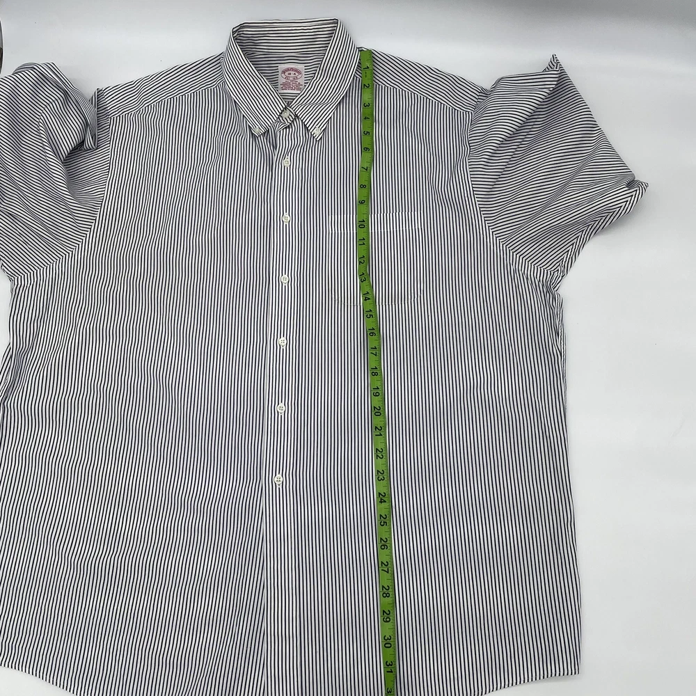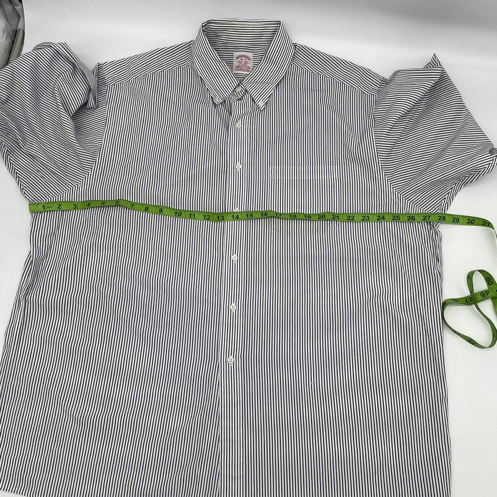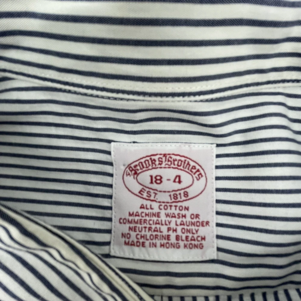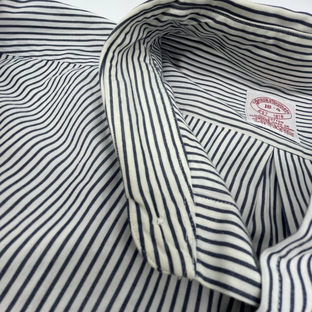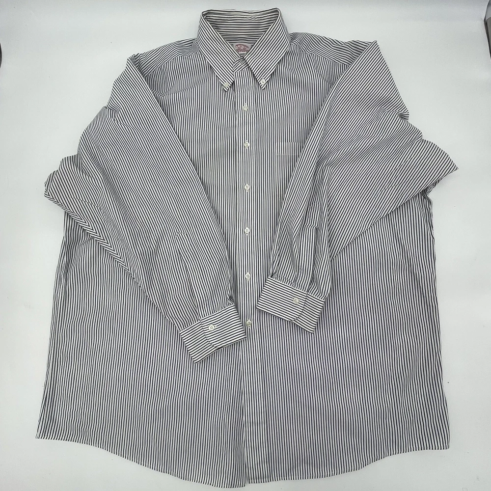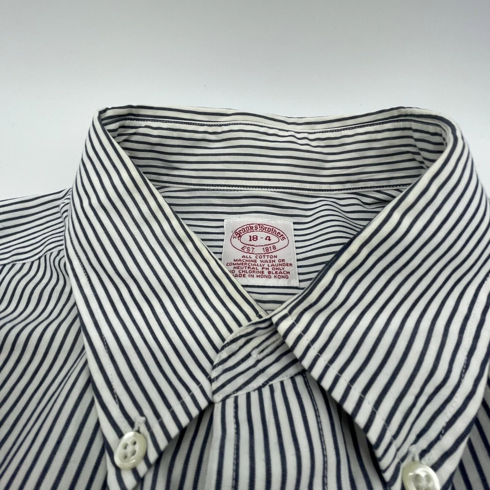 Size Type: Regular Brand: Brooks Brothers Pattern: Striped Fabric Type: Cotton Theme: Colorful, Work Vintage: Yes Type: Button-Up Collar Style: Button-Down Size: 18-4 Material: Cotton Features: All Seasons Color: Black/White Sleeve Length: Long Sleeve Fit: Regular Neckline: Collared Product Line: Brooks Brothers 346 Closure: Button Department: Men Accents: Button