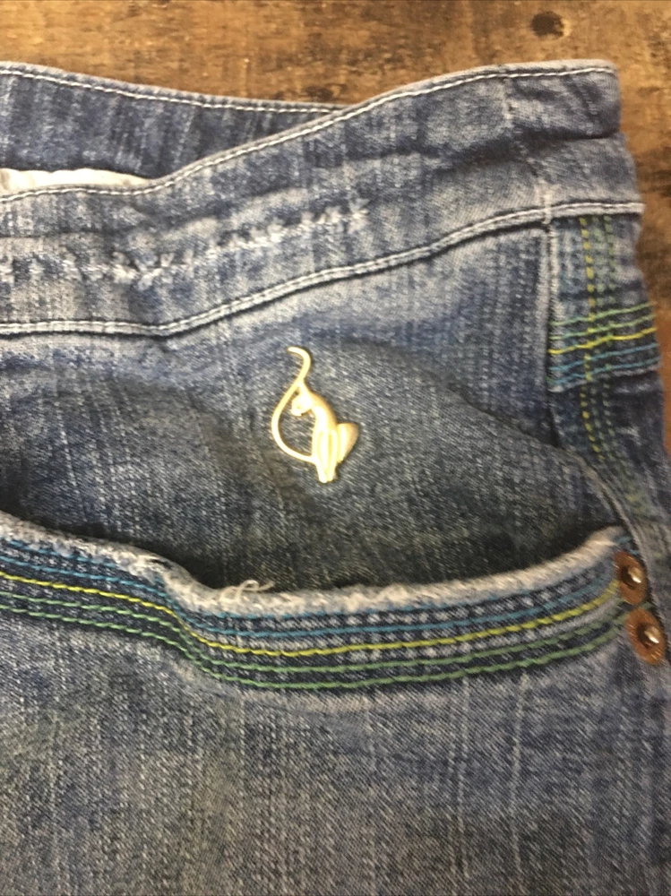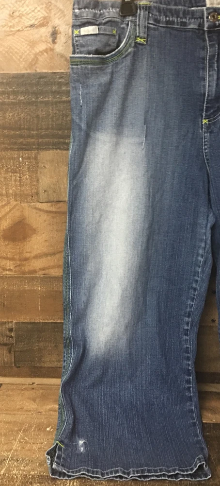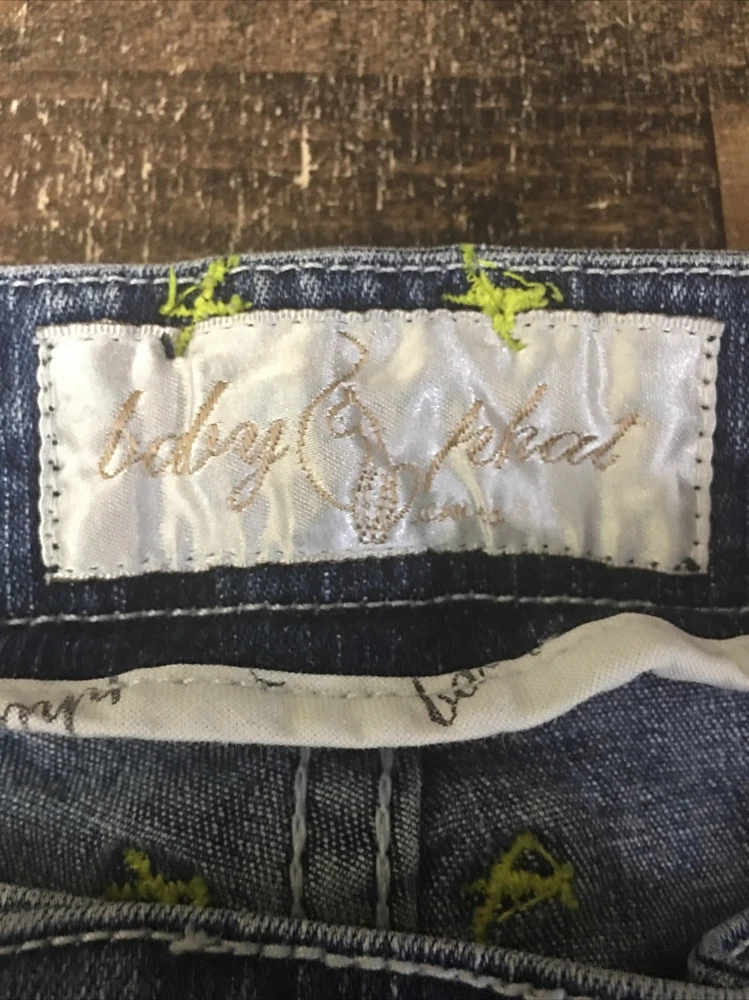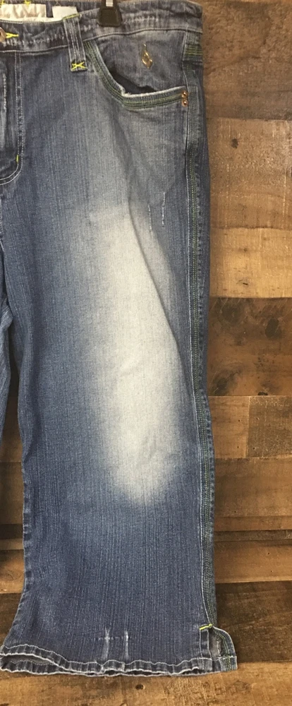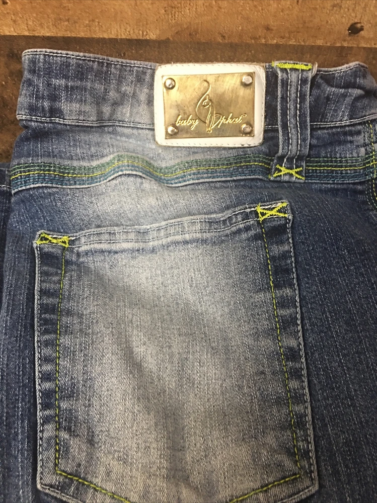 Season: Summer, Spring, Fall Vintage: Yes Accents: Button, Embroidered, Logo, Zipper, Button Legs, Metal Back Logo Tag Fabric Type: Denim Style: Capri Department: Women Pocket Type: 5-Pocket Design Fit: Regular Closure: Button Product Line: Baby Phat Theme: Hip Hop, 90s, College, City, Logo, Retro Brand: Baby Phat Size Type: Regular Color: Blue Model: Baby Phat Distressed: No Material: Cotton, Spandex Type: Jeans Pattern: Solid Rise: High (Greater than 10.5 in) Features: Pockets, Stretch Fabric Wash: Medium Size: 22 Waist Size: 38 in Inseam: 21 in Personalize: No Handmade: No