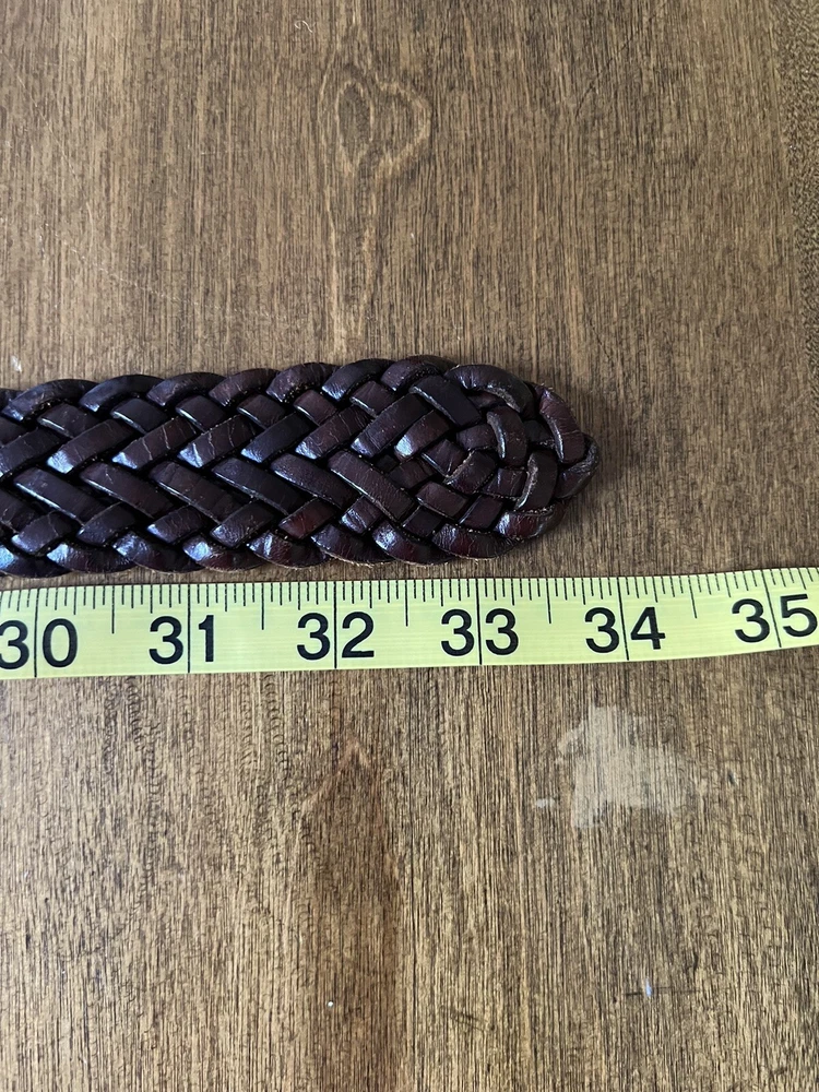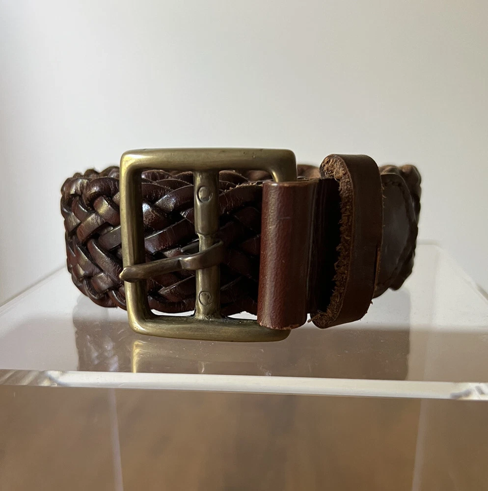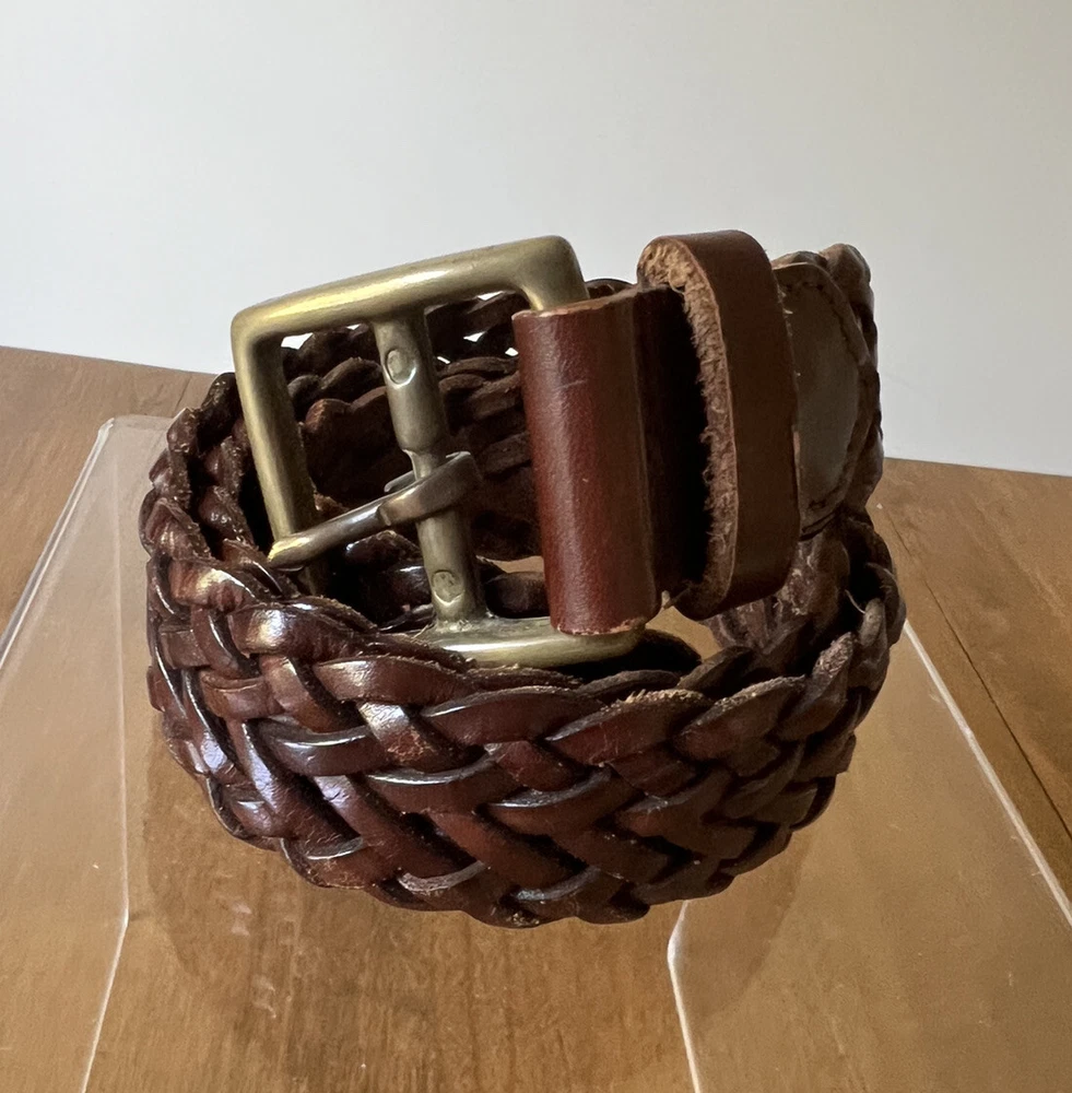 Beautiful Condition! This vintage braided leather belt from Banana Republic is a stylish and high-quality addition to any wardrobe. Crafted in Italy, this original piece features brass hardware and a rich brown color that complements any outfit. Its size is perfect for women in XS/S and it is a great accessory for vintage lovers. With its unique design and quality materials, this belt is a must-have for any fashion-forward individual. The Banana Republic brand is known for its attention to detail and this belt is no exception. Whether you're looking to add a touch of vintage charm to your outfit or simply need a reliable accessory to complete your look, this belt is the perfect choice.