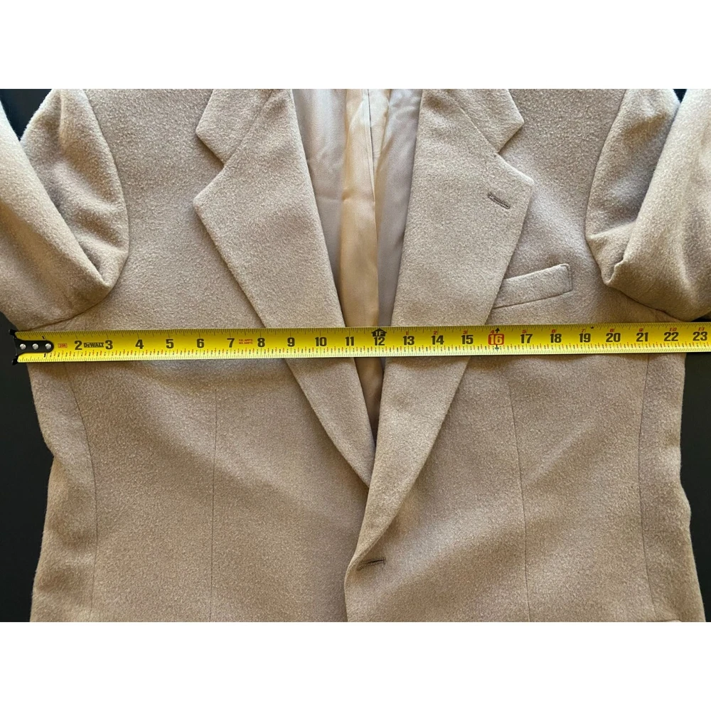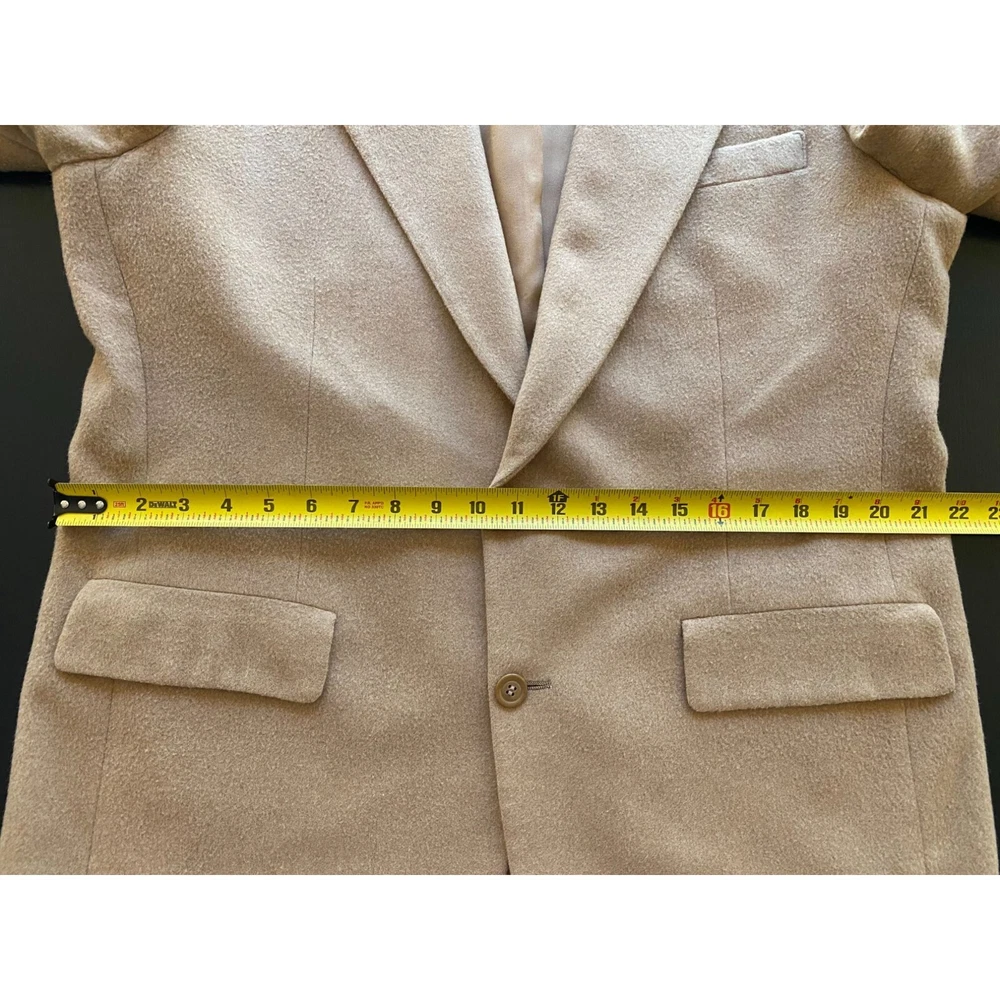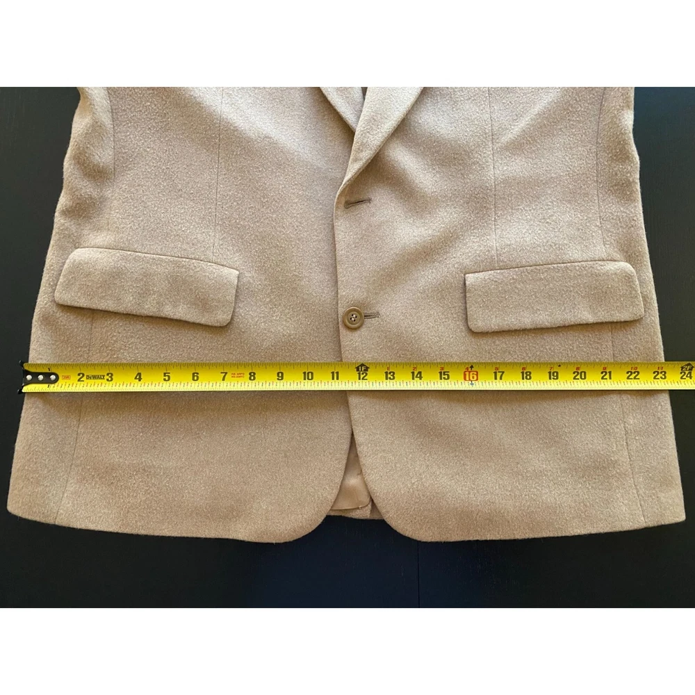 VTG Bill Blass 100% Camel Hair Sport Coat Mens 42R Tan Two-Button Jacket Blazer Good pre-owned condition. Flaw: Small fabric imperfection on right sleeve. Size tag is missing (jackets with similar measurements to this garment indicate this is likely be a 42R). Additional signs of normal wear may be present. Please see all photos. *Vintage, rare or flawed items are a final sale and non-refundable. Please rely on the photos and measurements provided to confirm they align with your needs prior to any offers/purchase. Size: Approximately 42R (please see measurements in photos) (Measurements in photos) Ships FAST & AFFORDABLE - next business day. - All Offers welcome -
