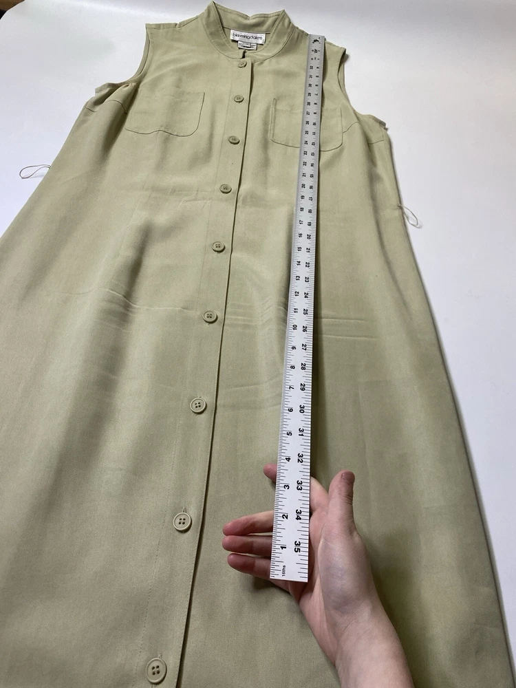 VTG Bloomingdales Womens Size 12 Tencel Lyocell Maxi Dress Tan Quiet Luxury SEE