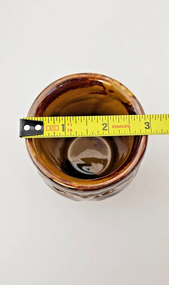 Elevate your tea time with this vintage Brown Glazed MCI Ceramic Owl Mug, a charming throwback to the 1970s. Crafted in Japan, this mug embodies the essence of the era with its quirky owl character and insulated design, perfect for keeping your beverage at the desired temperature whether it's hot or cold. The set includes four tea cups, each measuring 4 inches in height and 3 inches in width, making them compact and versatile for all occasions. The ceramic construction ensures durability, while the hand wash only care ensures these unique pieces remain pristine. Enjoy a touch of retro style with every sip. Most items we sell are pre-owned and many are vintage. They may show signs of use or age-related wear. We try to be careful about pointing out any flaws. Please carefully review the photos as they are part of the description. Excellent preowned condition. If you have any questions please contact me. Thank you All sales are Final We do not accept returns. However, we want you to be happy with your purchase! If you have ANY issues with the item, please contact us. We would like a chance to work it out and earn your 5-star review!