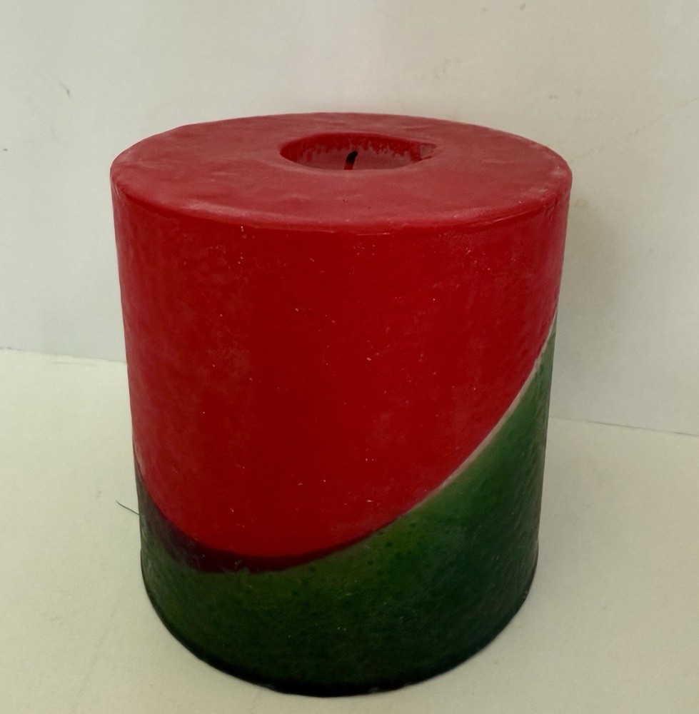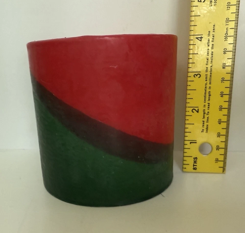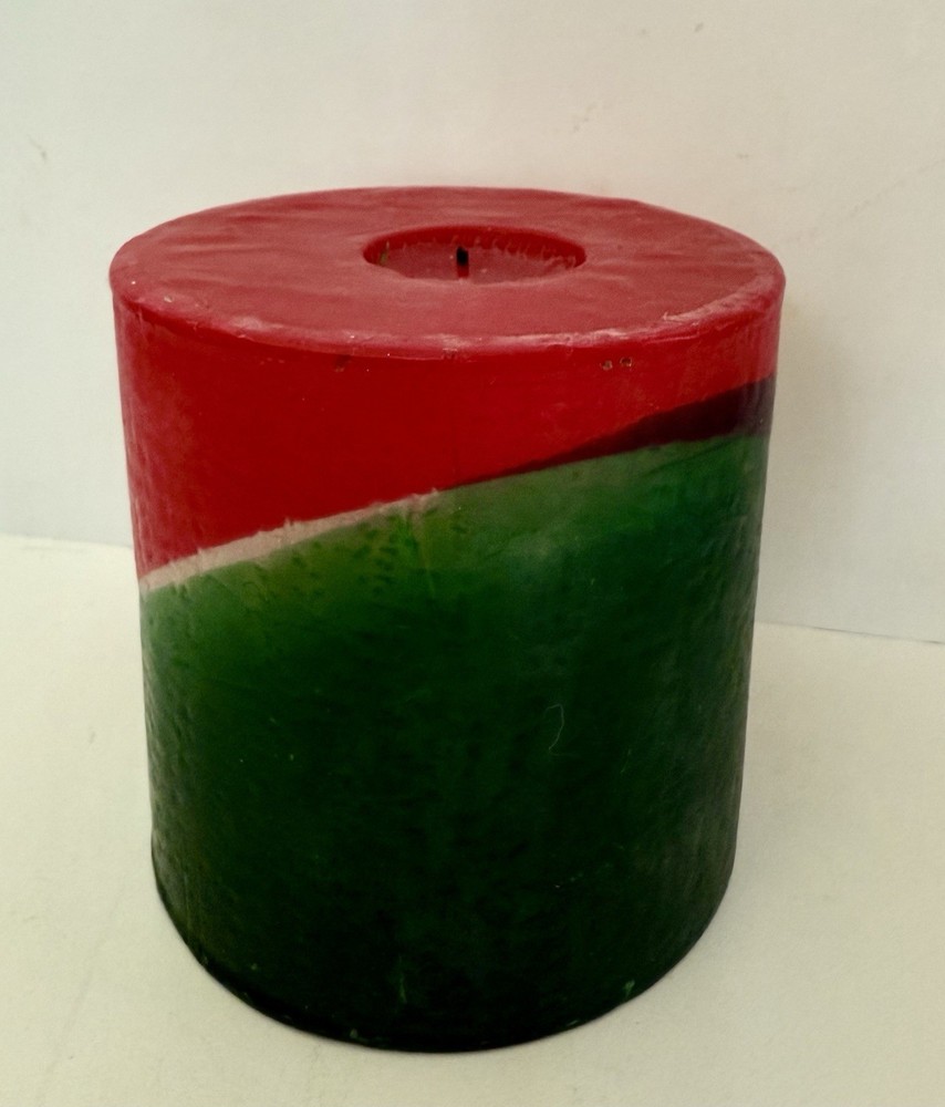 Country of Origin: United States Item Width: 4 in Theme: Christmas Item Height: 4 in Color: Red & Green Number in Pack: 1 Material: Wax Type: Pillar Candle Shape: Cylinder Handmade: Yes Brand: Bullfrog Light Co. Size: Medium Scent: Unscented Features: Decorative