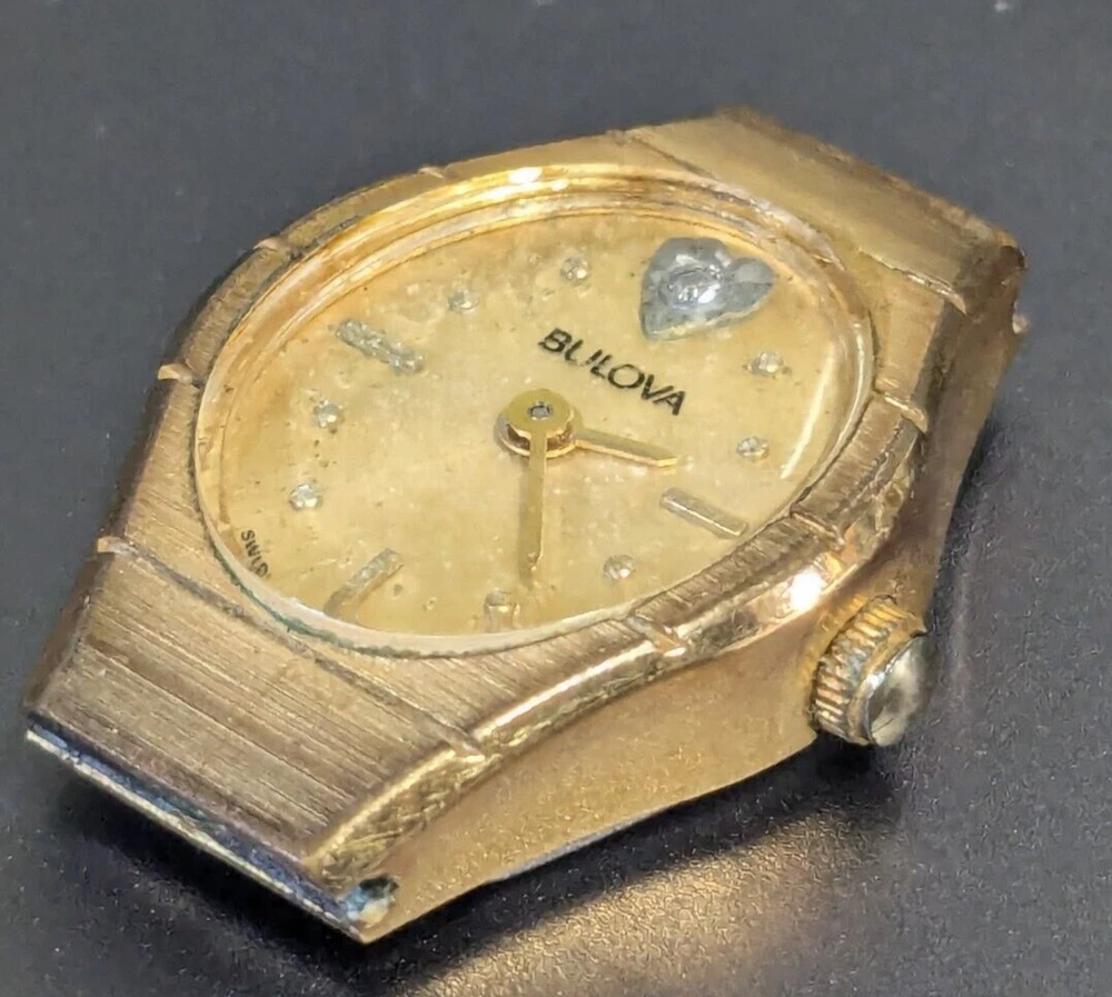 VTG Bulova Ladies 92K75 Diamond Dial Watch - For Parts or Repair Untested and in kind of rough shape as seen. Crown does move hands as it should.