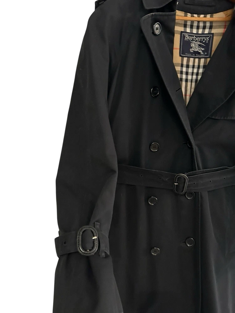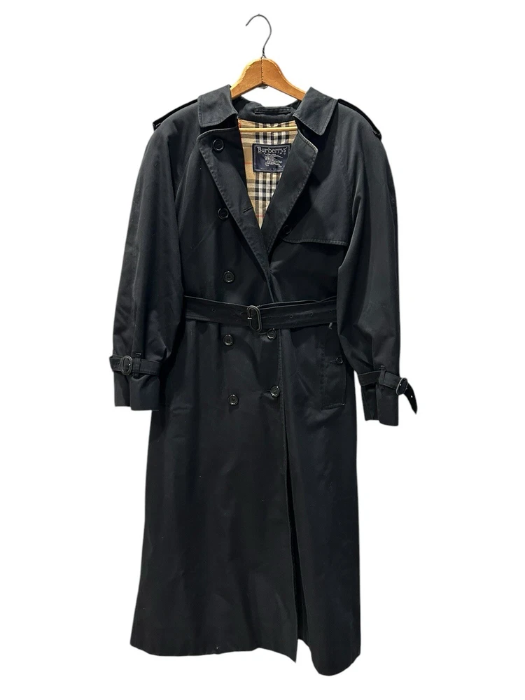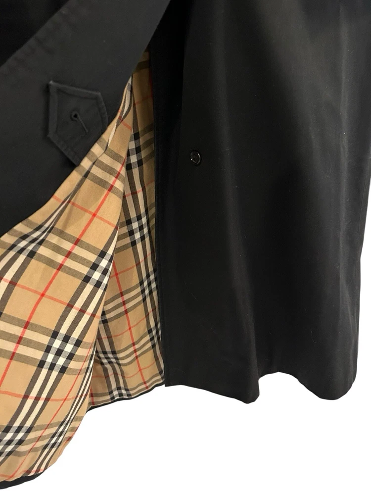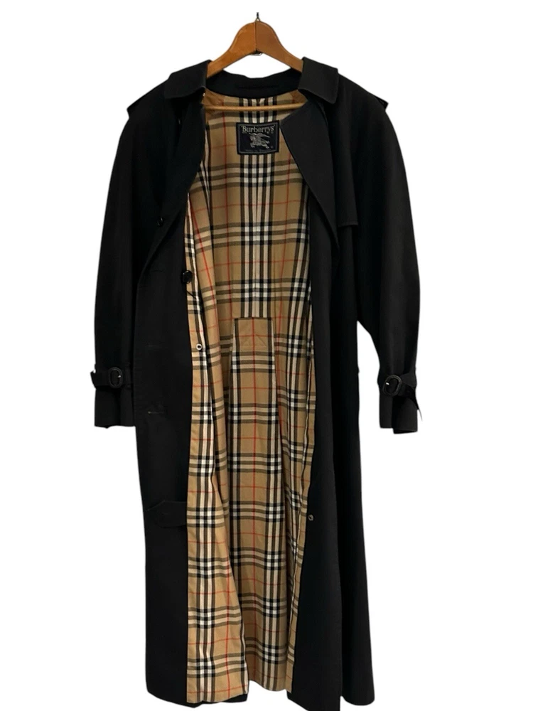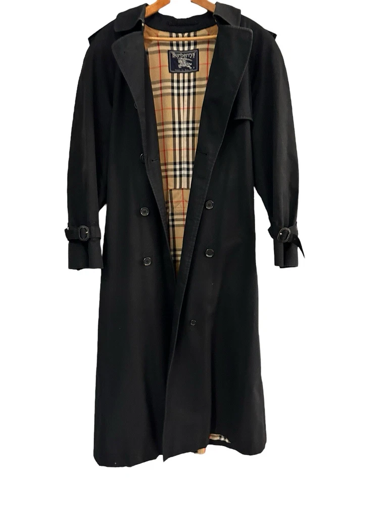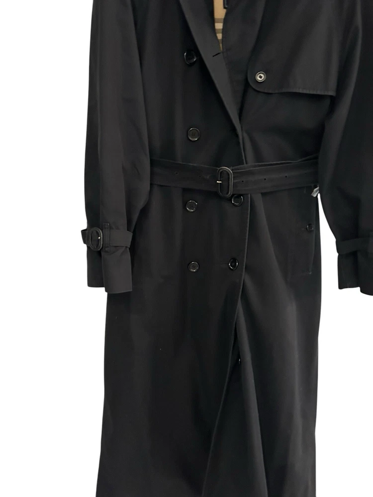 VTG Burberrys Trench Coat Nova Check Lined Black England Ladies L