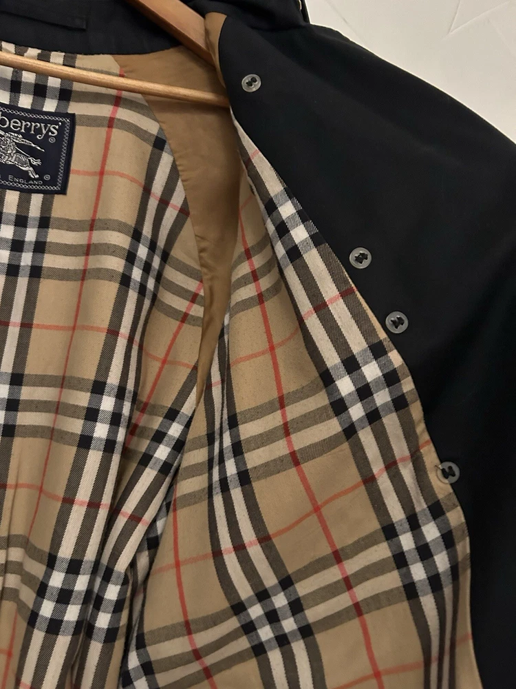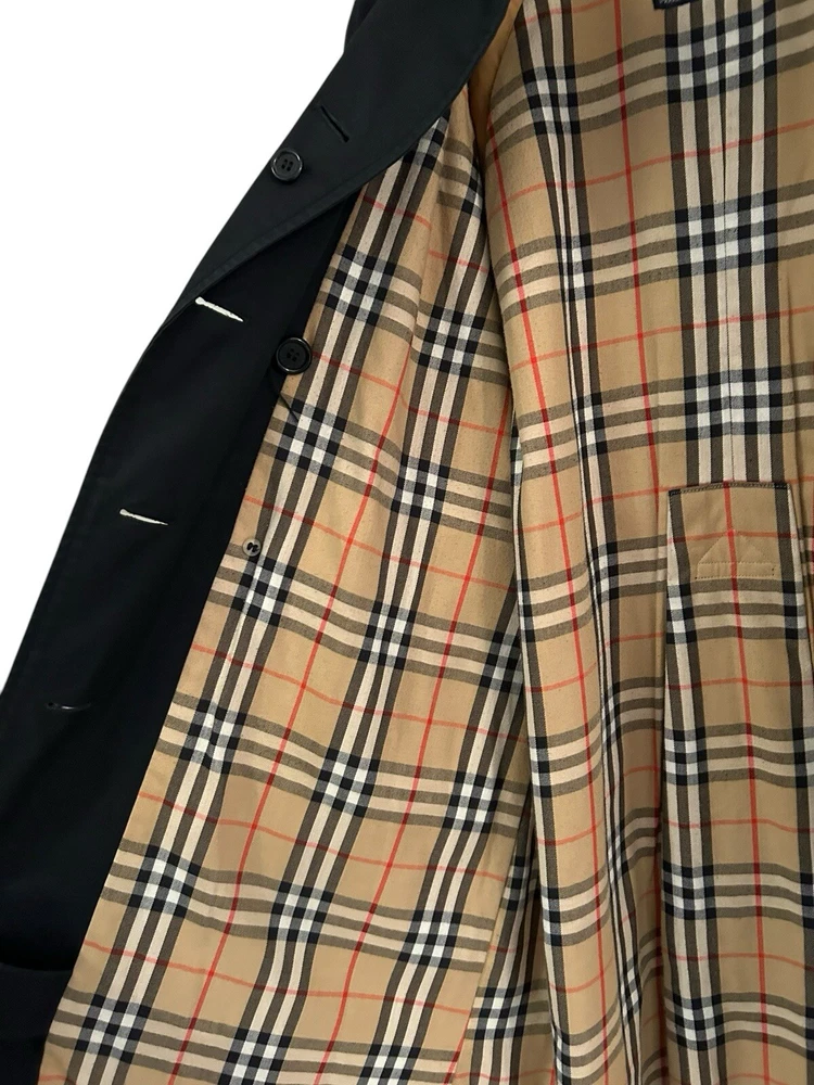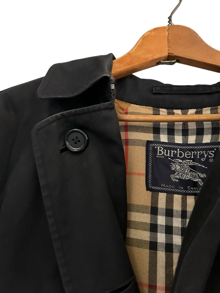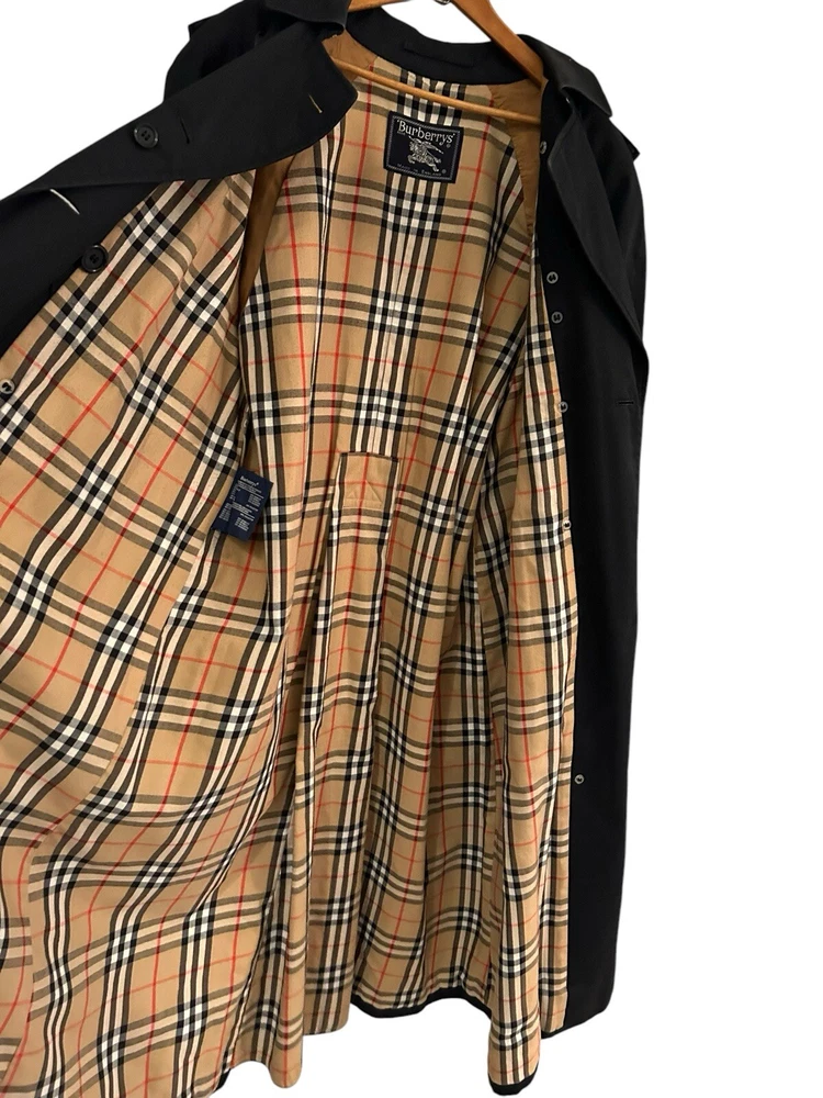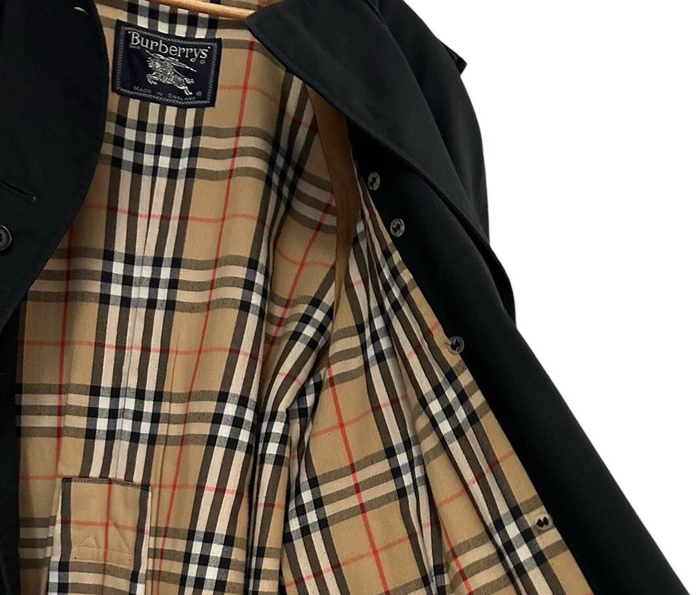VTG Burberrys Trench Coat Nova Check Lined Black England Ladies L
