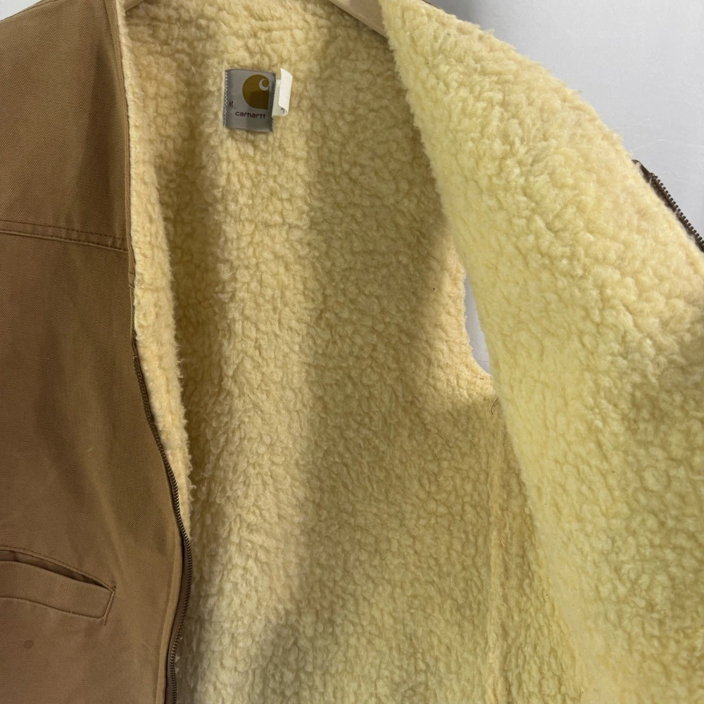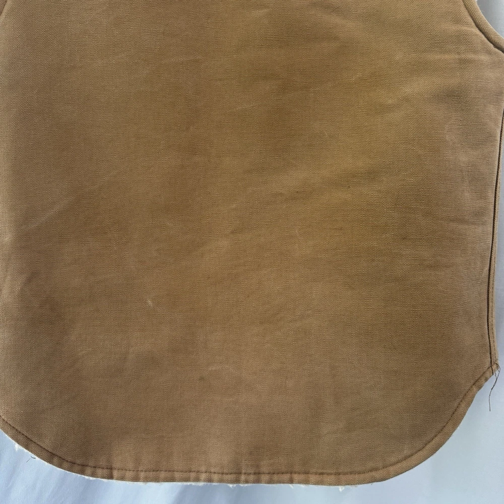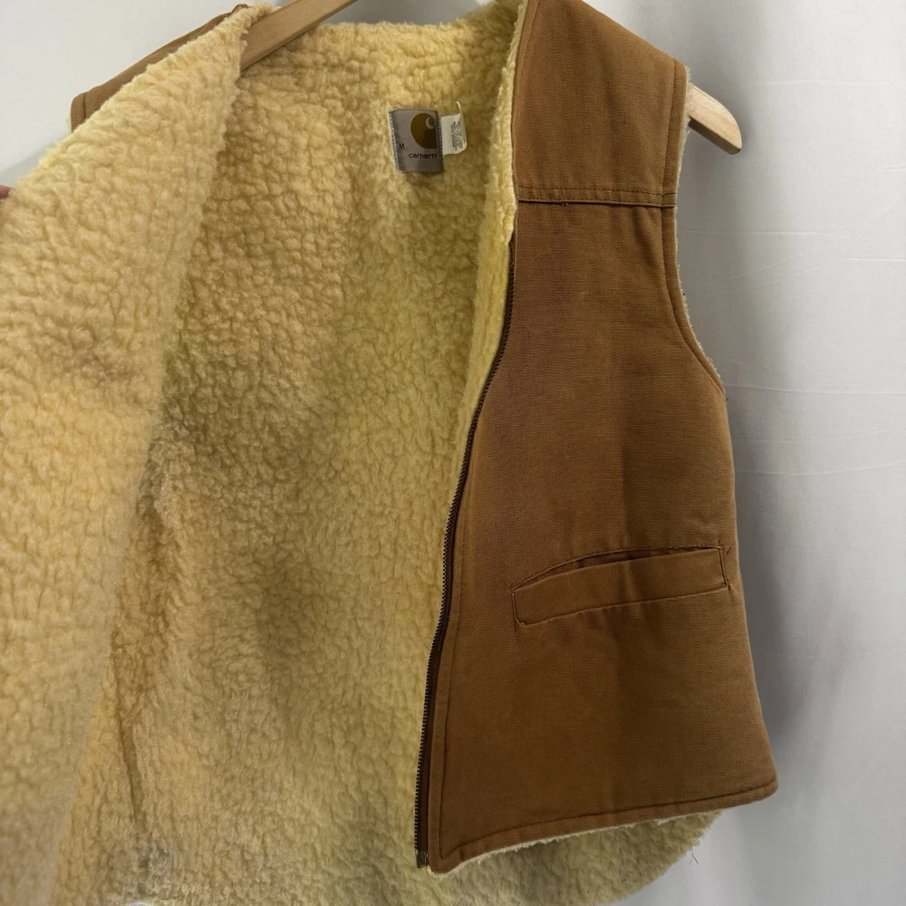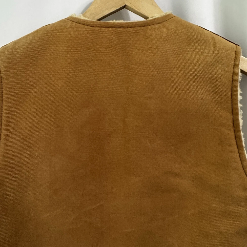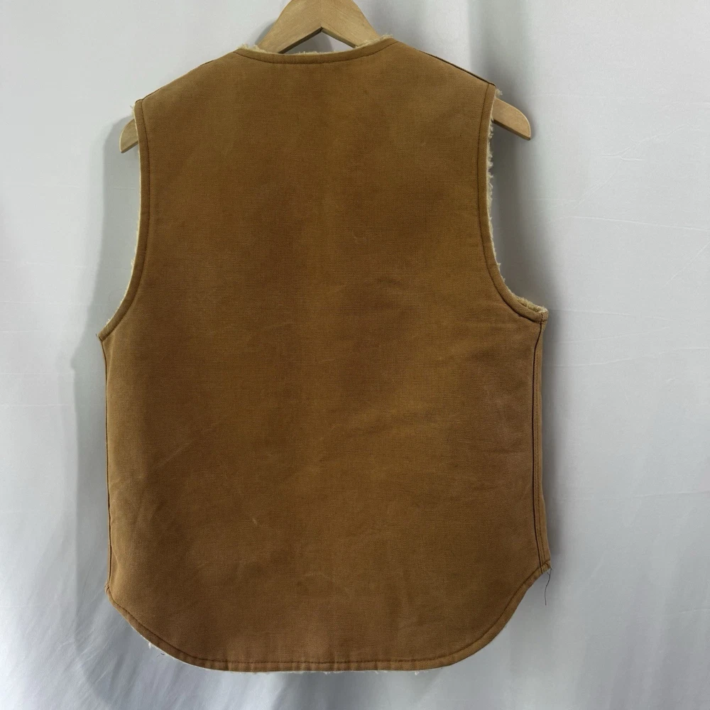 The VTG Carhartt Medium Full Zip Sherpa Lined Field Vest Jacket in brown is a rare vintage piece from the 80s or 90s. Made with a cotton outer shell and lined with polyester, this vest features a solid color pattern, zipper accents, and is designed for outdoor activities like walking, hunting, and hiking. With a bomber jacket style and themes of nature, biker, motorcycle, and retro, this Carhartt vest is both functional and stylish, perfect for a dad or someone with a love for the wilderness. Size: Medium Width: 21" Length: 24" Condition: Pre-owned Please note: Width is the armpit to armpit measurement. Length is measured from the shoulder to bottom hem. All measurements were taken with the item laying flat. Ships from a smoke free home! Please see all photos for the exact item condition. Thanks for checking out my store! All items are shipped within two business days. A-62