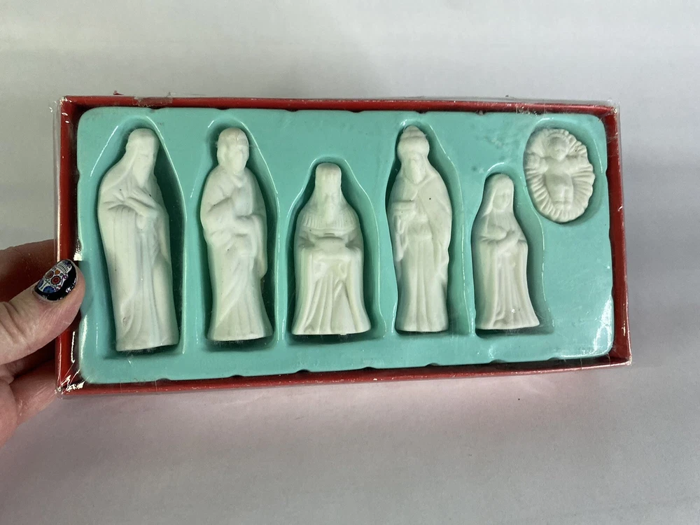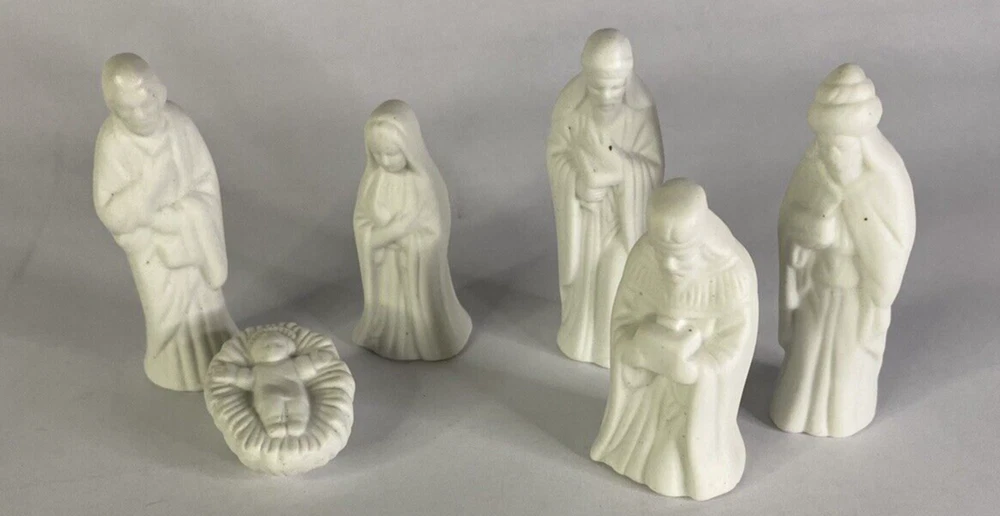 VTG Ceramic Bisque 6 Piece Nativity Set Ready to Paint Detailed Miniatures
