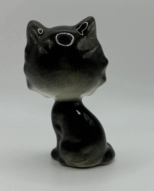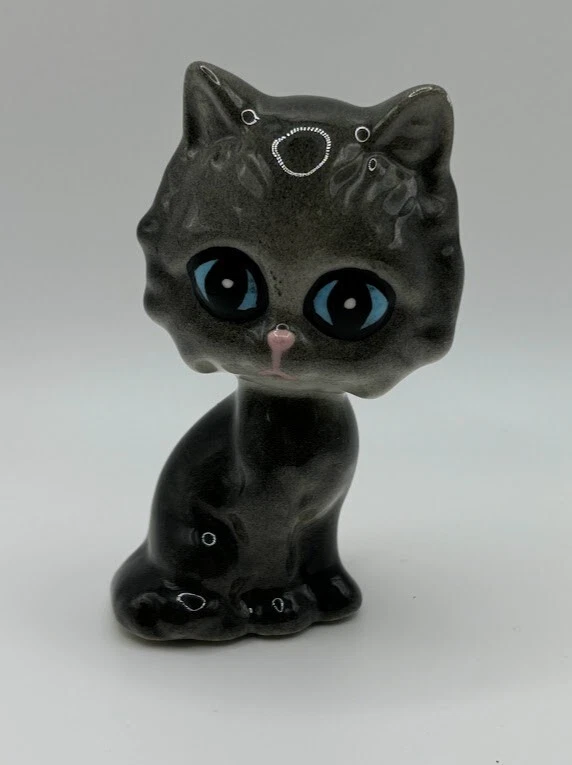 VTG Ceramic Black Kitten/Cat Kitty ~ Big Head & Blue Eyes Figurine ~ Kitschy