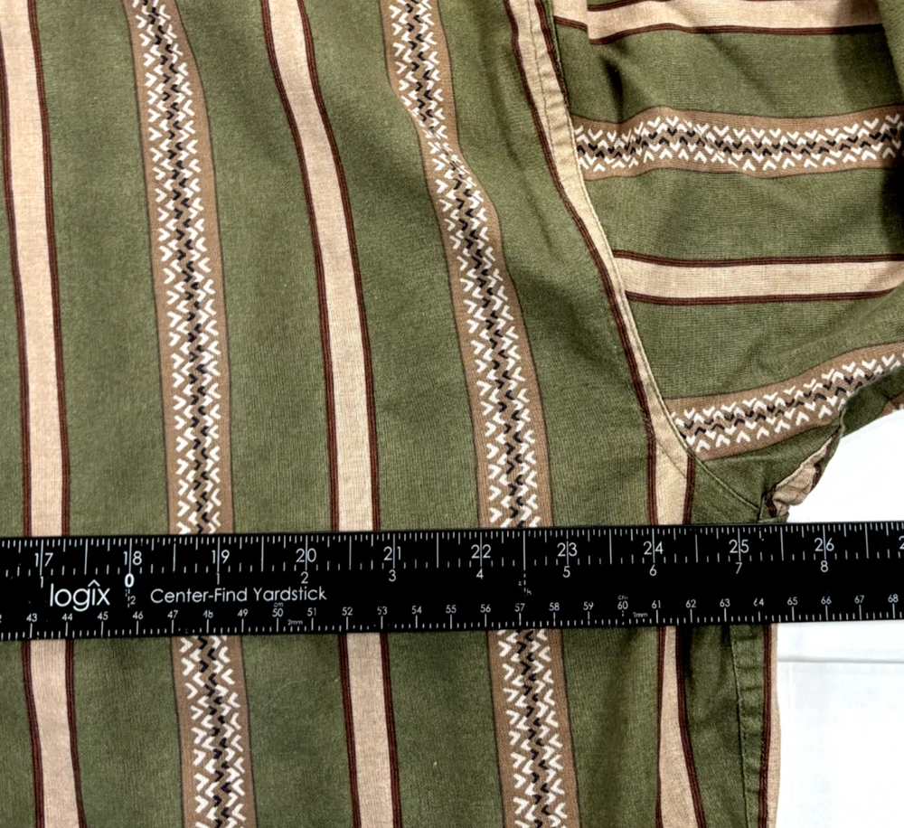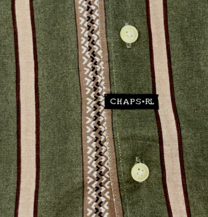 Chaps Ralph Lauren Shirt Green Geometric Striped Long Sleeve Pocket Button Up XL Please refer to photos for the most accurate measurements, description, and estimation of the item's condition. We’re happy to answer any questions or provide additional photos before purchase if requested! All items are sold as is and we try our very best to note any issues with condition in both our description and close up photos. Please remember that colors can look different across different devices and monitors. FAST SHIPPING! Orders are usually shipped within 24 hours M-F Friday orders will ship Monday morning at the latest, unless there is a postal holiday. Feel free to send us a message before purchase if you?d like a certain delivery service or combined shipping offers. Condition: Please see photos for measurements. Any further measurements needed? Just ask! EUC Pre-Owned: shows minimal to no signs of wear, as expected with typical well cared for use such as slight fading of colors with age. Please make sure to double check measurements for the best representation of fit, as brands can vary in sizing. Comes without sales tags, dust bag, or brand box. Will it Fit Check? Please reference the listed measurements (in photos and/or text) before purchasing. Fit check tip: Grab your favorite similar style item at home, lay the garment on a flat surface, and measure shoulder to shoulder, the width (armpit to armpit), and length (top to bottom). Then compare your measurements to those in our listing! If you need any further measurements not noted in the listing, please feel free to request, we will get back to you asap. Still got Questions? Send us a message! We do our best to accurately and thoroughly represent each item in images and condition description, but, if there's any further information you'd like before purchasing or have a shipping request, please don't hesitate to ask and we'll get back to you asap. RETURN POLICY: Please reach out prior to purchase with any questions or shipping requests. Returns are accepted within 30 days, buyer pays return shipping. Refund issued upon receipt of item in original condition. Full refund (minus original shipping) will be issued once we receive the item assuming it is in the exact same condition as it was shipped.(Clean, unaltered, tags still attached if item was new with tags, etc.) We request that you select "Item does not fit" when returning an item that does not fit. Thank you for shopping small and supporting our lil' Rodeo!