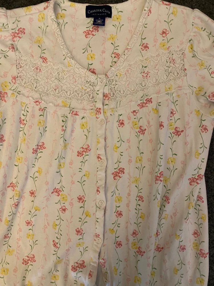 VTG Charter Club Floral Lace Housecoat Robe Women Med Cotton Prairie Cottagecore Good pre-owned condition. Free of rips, tears or holes. Additional signs of normal wear may be present. Please see all photos. Size: Med - 100% cotton - machine washable (Measurements in photos) Ships FAST & AFFORDABLE - next business day. - All Offers welcome -