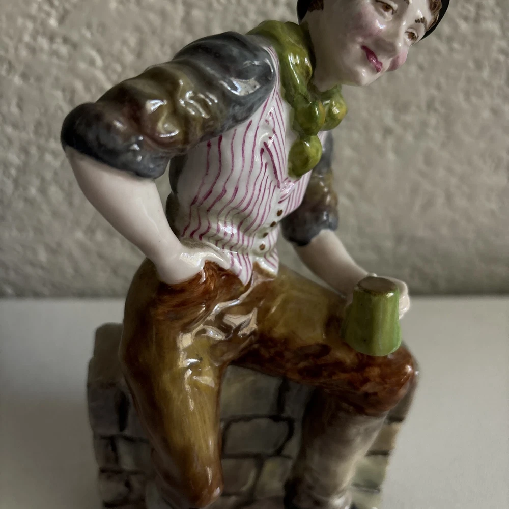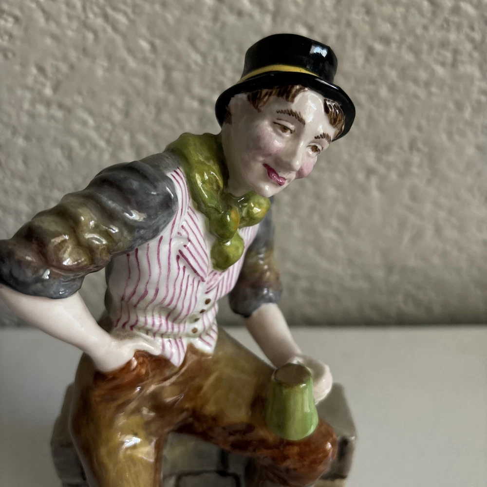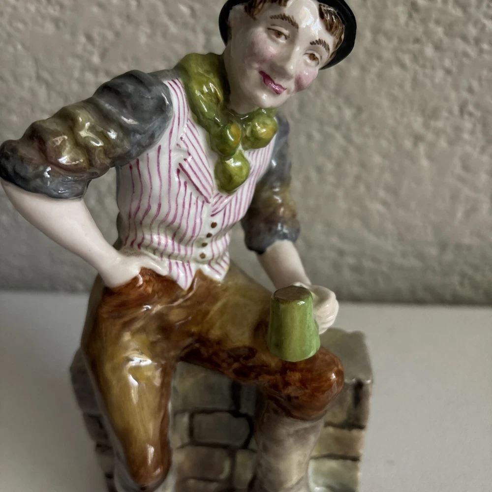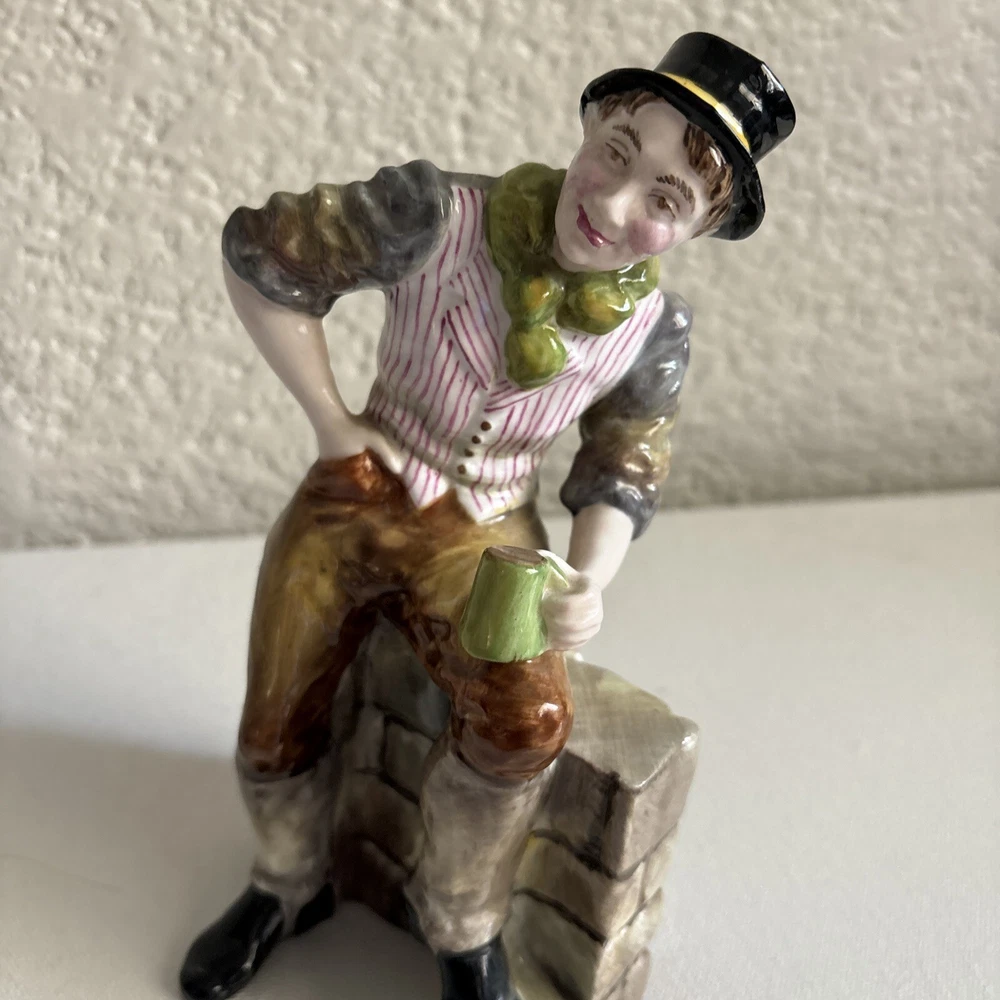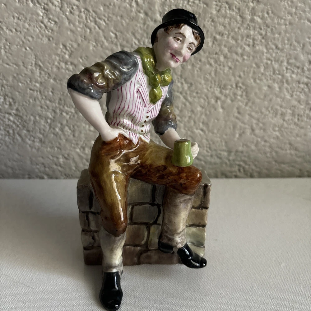 This exquisite figurine from Crown Staffordshire depicts a man on a wall holding a pint. It has been beautifully hand-painted with a high gloss finish, and is made from fine bone china, porcelain and ceramic. The lad with pint figurine is part of a special edition collection and is an original piece from the Georgian era. Measuring 8 inches in height and 3.5 inches in width, this decorative piece is perfect for any collector of antique figurines. It comes in a box for safekeeping and features a printed backstamp. The lad with pint figurine is a charming addition to any home dΓ©cor and a must-have for fans of Charles Dickens.