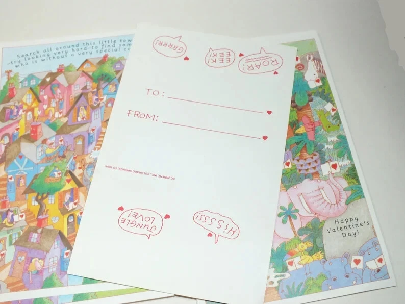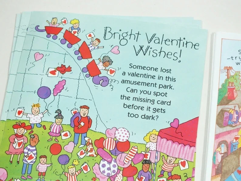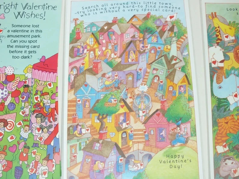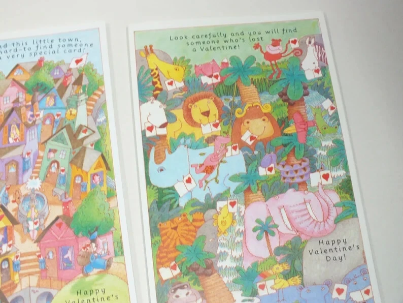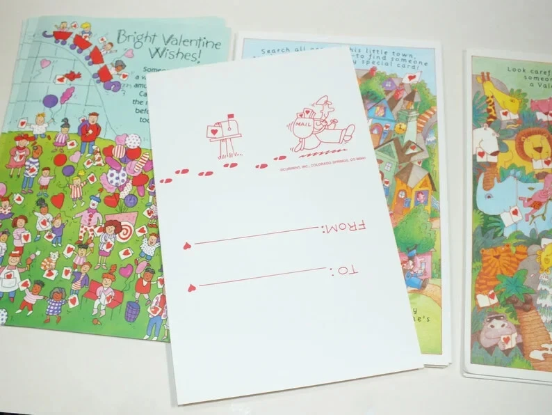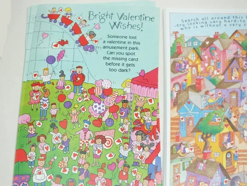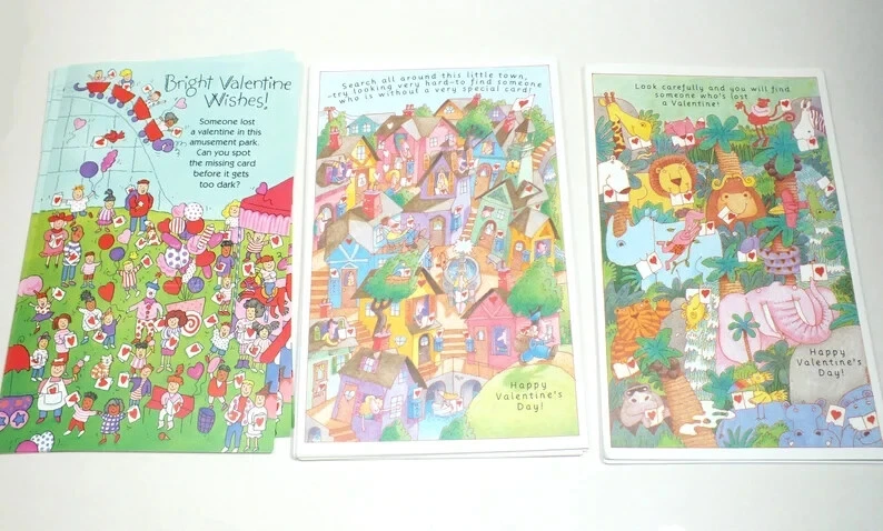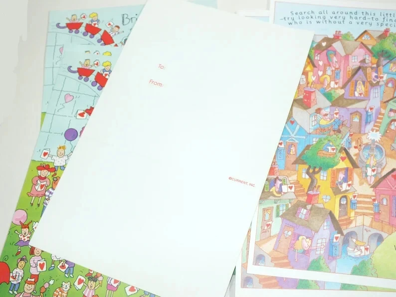 VTG Current 1992 Hidden Picture Valentines Card 29 Cards Puzzles Ephemera E9 29 unused cards. These are trifold cards that fold into their own envelope. The cards in unfolded position measure 5.5" x 9". Shipping and handling is USPS ground advantage shipping with delivery confirmation. If you are interested in more then one of my "buy it now" auctions, I will do my best to offer a reasonable combined shipping discount. I charge close to actual shipping cost as I can. Since the size of the products I sell are varied, I won't know the cost of shipping orders together until the auctions have ended. If you buy more then one item, please do not pay until you have received a combined invoice from me. I will do my best to combine items with a reasonable shipping charge unless the items are too large or awkward to ship together.