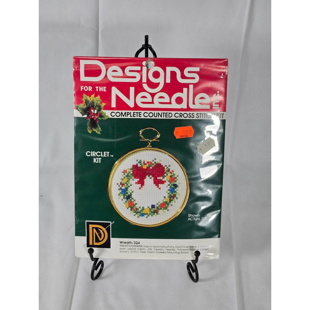 VTG Designs for Needle Counted Cross Stitch Circlets Kit Wreath #324 Christmas