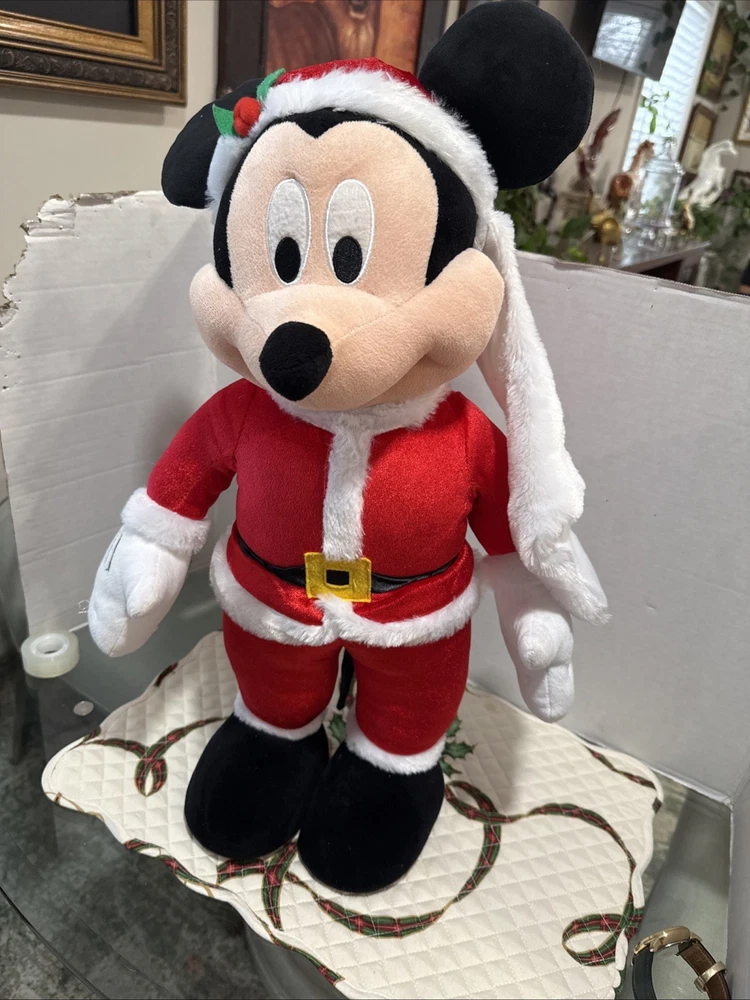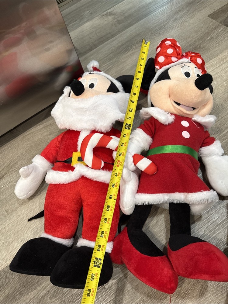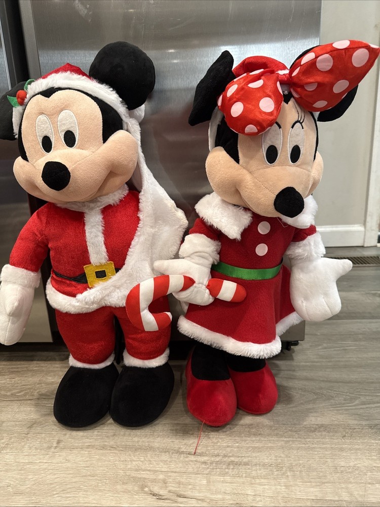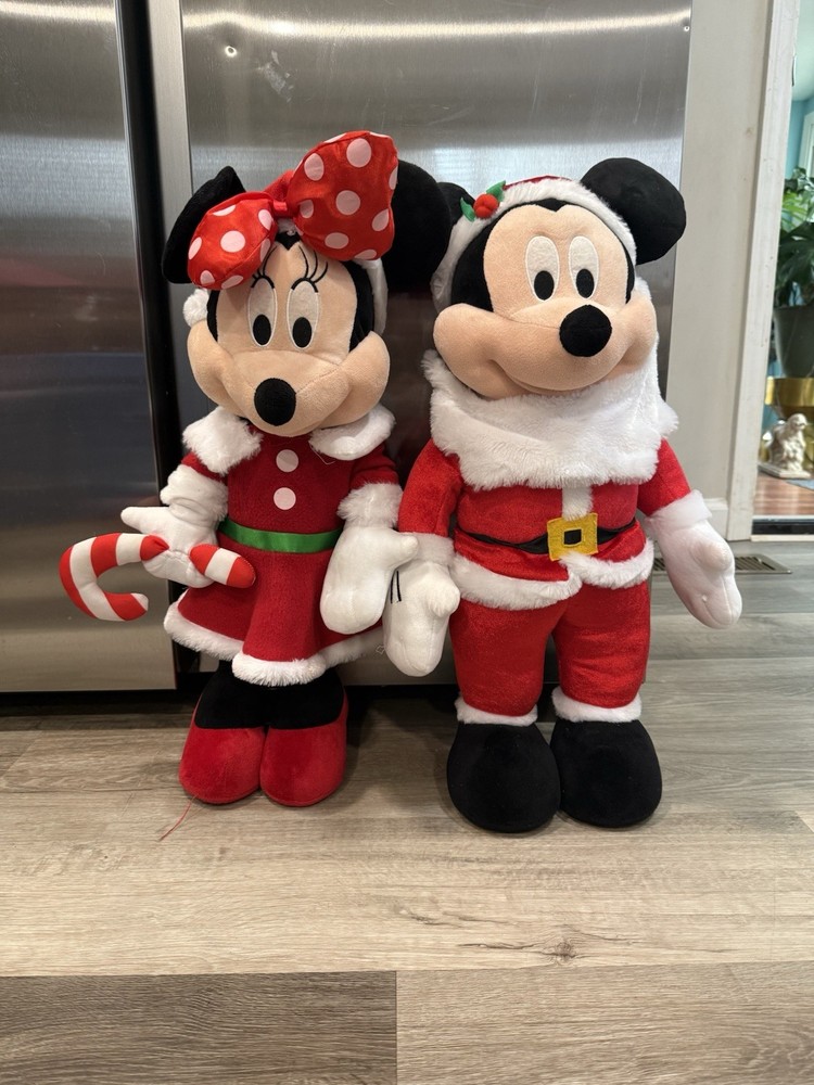 VTG Disney Gemmy Christmas Santa Mickey & Minnie Mouse Standing Plush 24” Tall