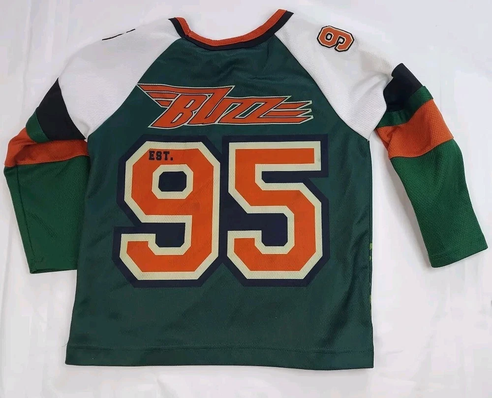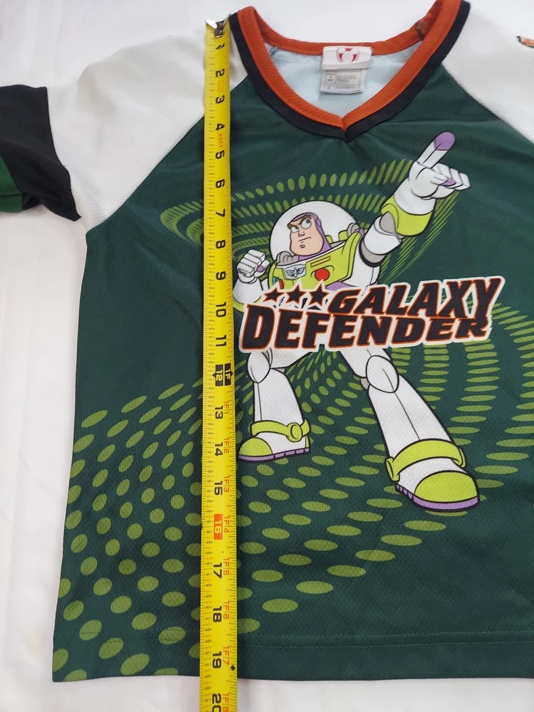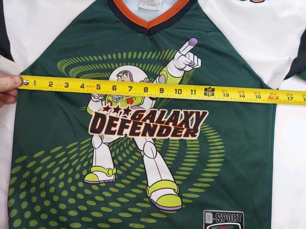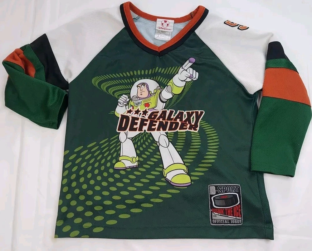 Character Family: Disney Brand: Disney Theme: hockey Performance/Activity: Hockey Vintage: Yes Size: S Type: Casual Sleeve Length: Long Sleeve Style: Jersey Material: 100% Polyester Character: Buzz Lightyear Department: Boys Neckline: V-Neck Color: Multicolor Closure: Pullover