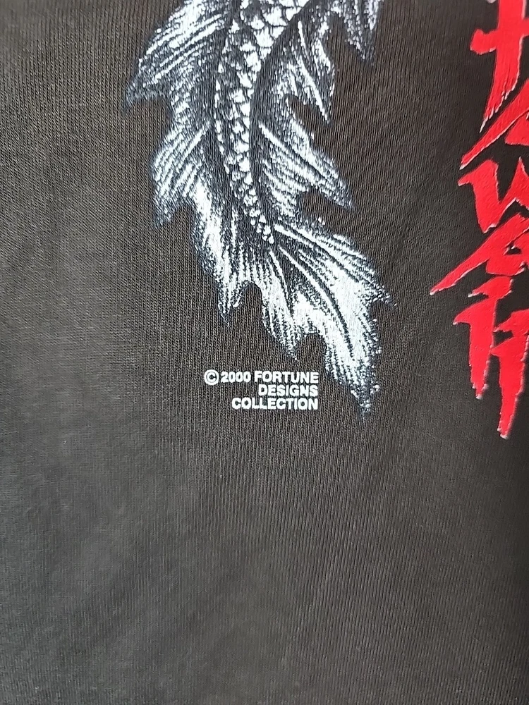 This vintage Fortune Designs Collection t-shirt for men features a graphic print of a dark brown dragon, with a crew neck and short sleeves. The shirt is made of cotton and is machine washable. The size is 2XL and the shirt is a regular fit. The shirt is perfect for those who love nature, art, beach, animals, colorful, Hawaiian, outdoor, and tropical themes. It also features a Yin Yang, tribal, and dragon design. This t-shirt is a great addition to your collection and is perfect for summer, fall, and spring seasons.