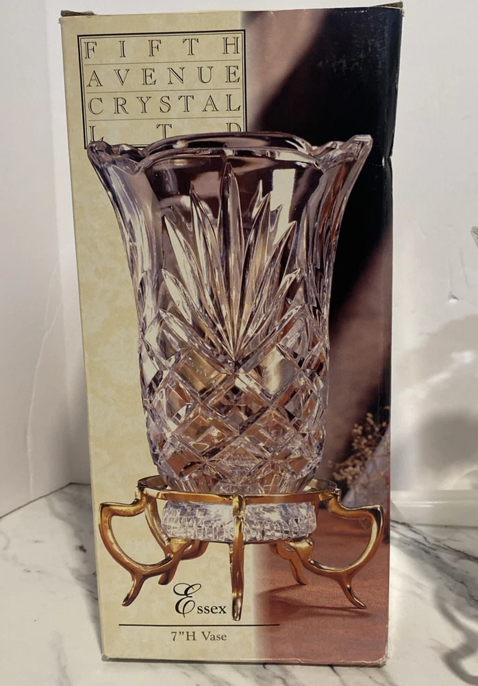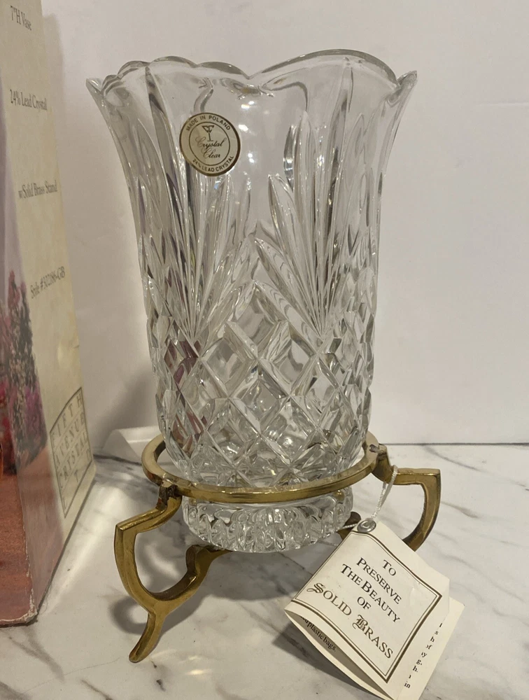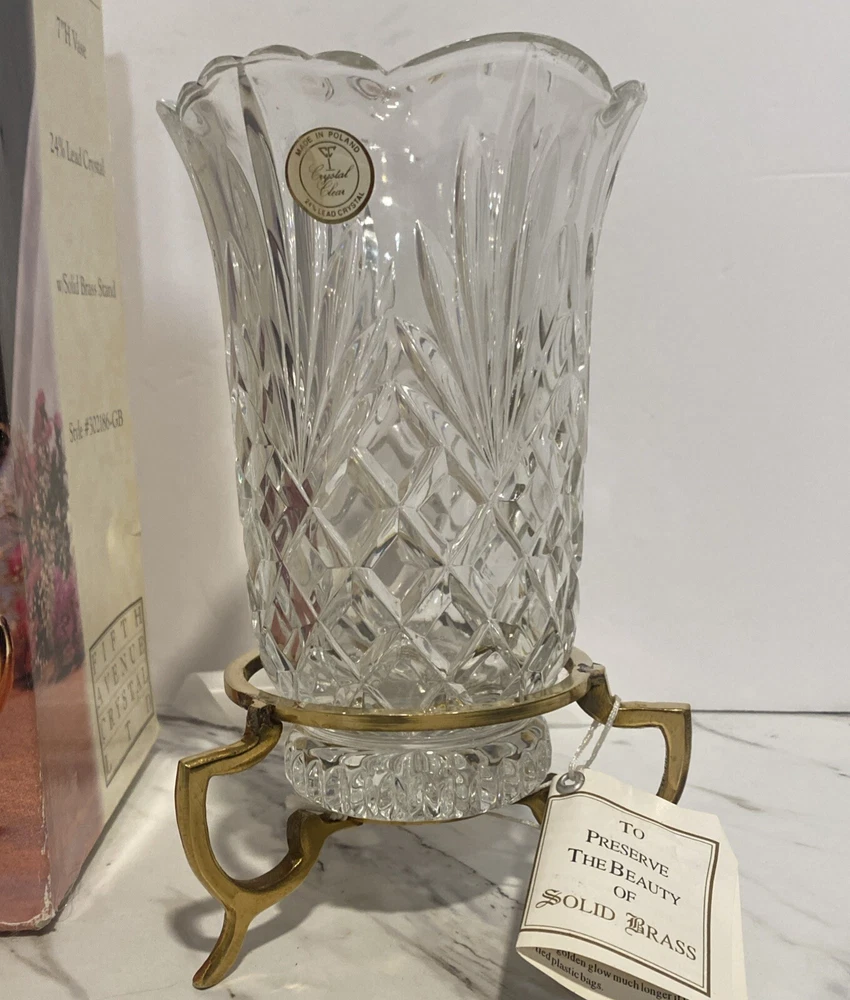 VTG Fifth Avenue Crystal Vase On Brass Pedestal - Essex Design - Made In Poland NEW Old Stock-Box opened only to confirm condition, inspect and take photos. Thank you for looking and supporting my small business!