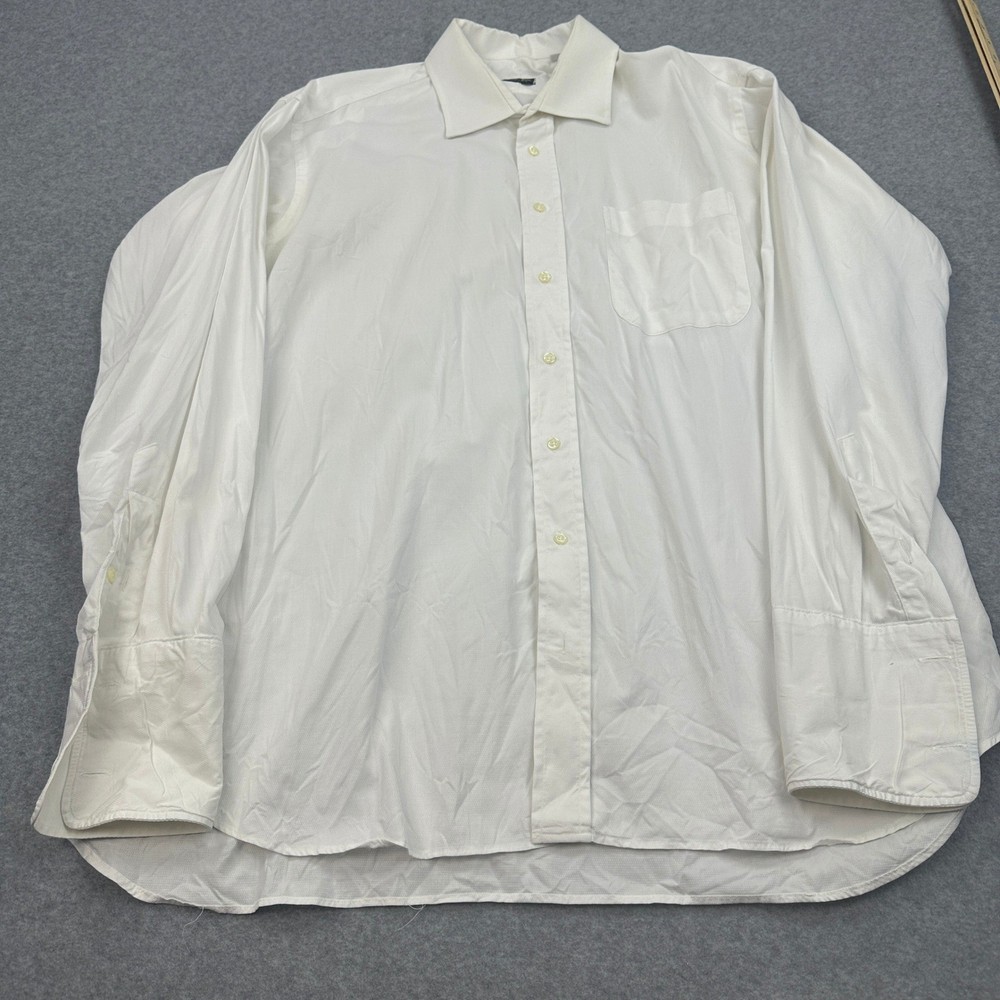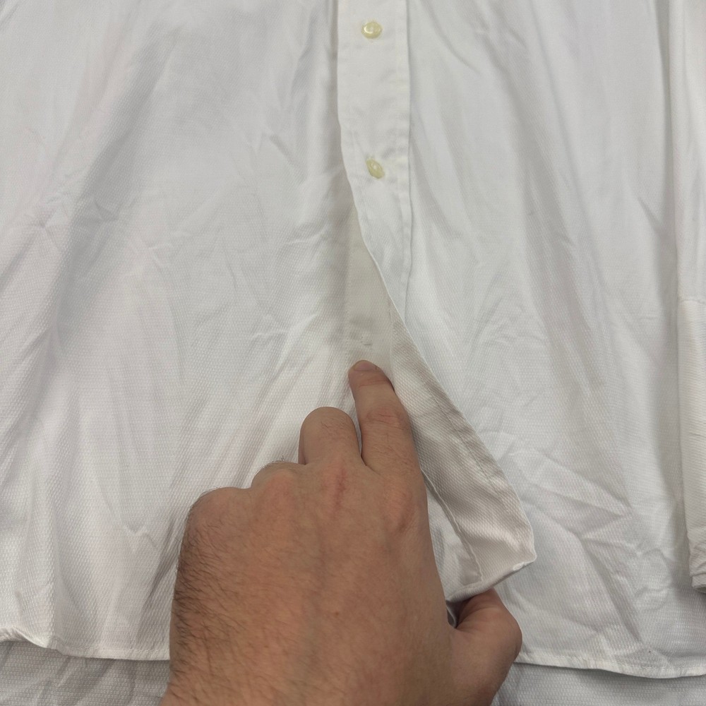 Crisp sophistication defines this Gitman Bros dress shirt, a timeless addition to any discerning gentleman's wardrobe. The classic point collar frames the face with understated elegance, while the long sleeves offer versatility for both formal and casual settings. The button-down design ensures a polished look, whether worn alone or layered under a blazer. The pristine white hue exudes confidence and refinement, making it a staple piece for any occasion. Perfect for a business meeting, a formal dinner, or a stylish night out, this shirt will elevate your look with its impeccable tailoring and timeless appeal. Color: White Department: Men Type: Dress Shirt Neck Size: 17.5 in Fit: Regular Sleeve Length: Long Sleeve Pattern: Solid Material: 100% Cotton, Cotton Blend Collar Style: Point Character: Classic, Sophisticated, Elegant, Refined Top Cuff Style: Barrel Cuff Features: Breathable, Pockets Neckline: Collared Keywords: Gitman Bros, dress shirt, long sleeve, button down, point collar, white shirt, men's dress shirt, formal shirt, business shirt, classic fit, cotton shirt, men's clothing, size 17 1/2 35