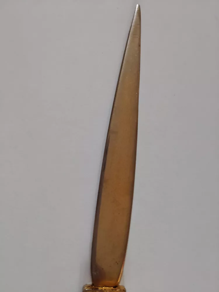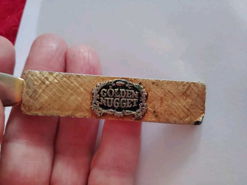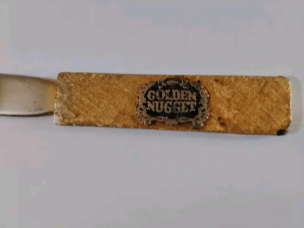 Please note::: see all pictures for condition...this was gold plated at the time and has faded off due to age on the knife file area..the handle pard has some of the golden tone on it but some of it chipped off as seen in the pictures...this is extremely rare as I am the only one selling it on eBay..it's literally 60 years old from the famous Golden Nugget Casino in Las Vegas Nevada...end to end is 8" and very much still usable...free shipping