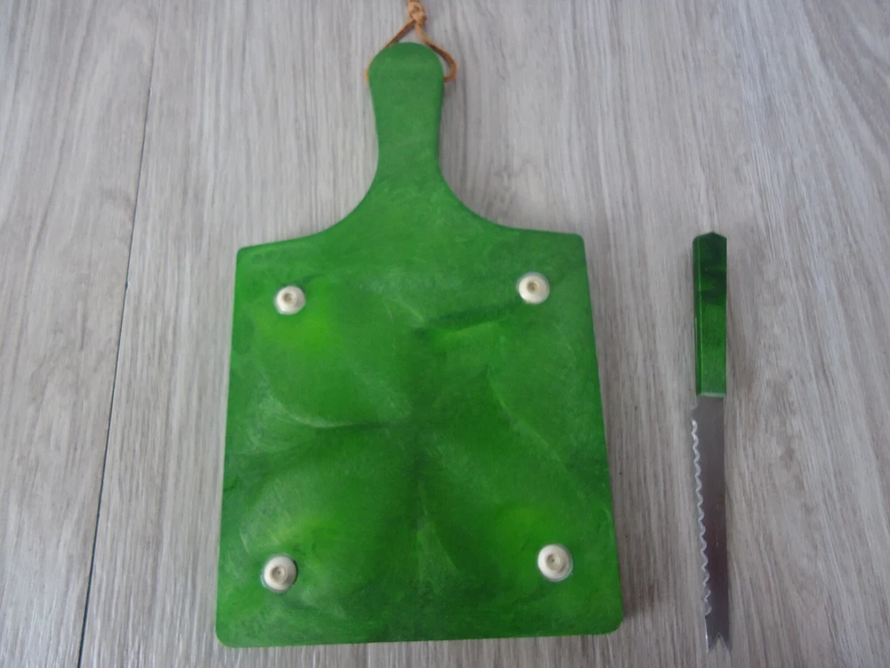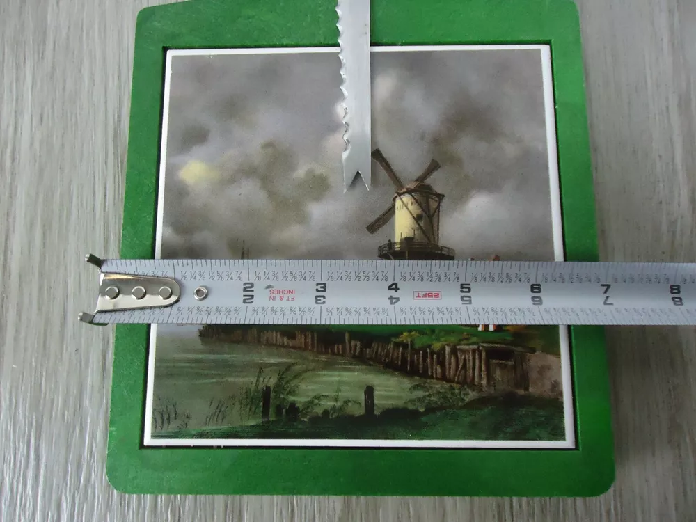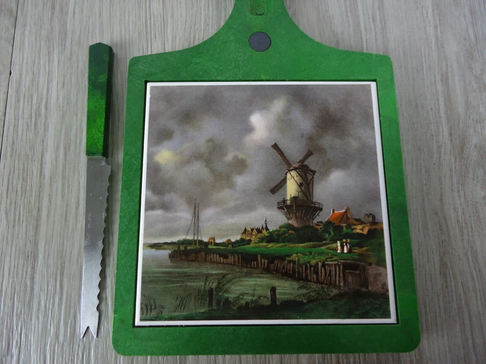 VTG Green Cheese Board Knife Set Windmill Seascape Ceramic Tile Made in Japan