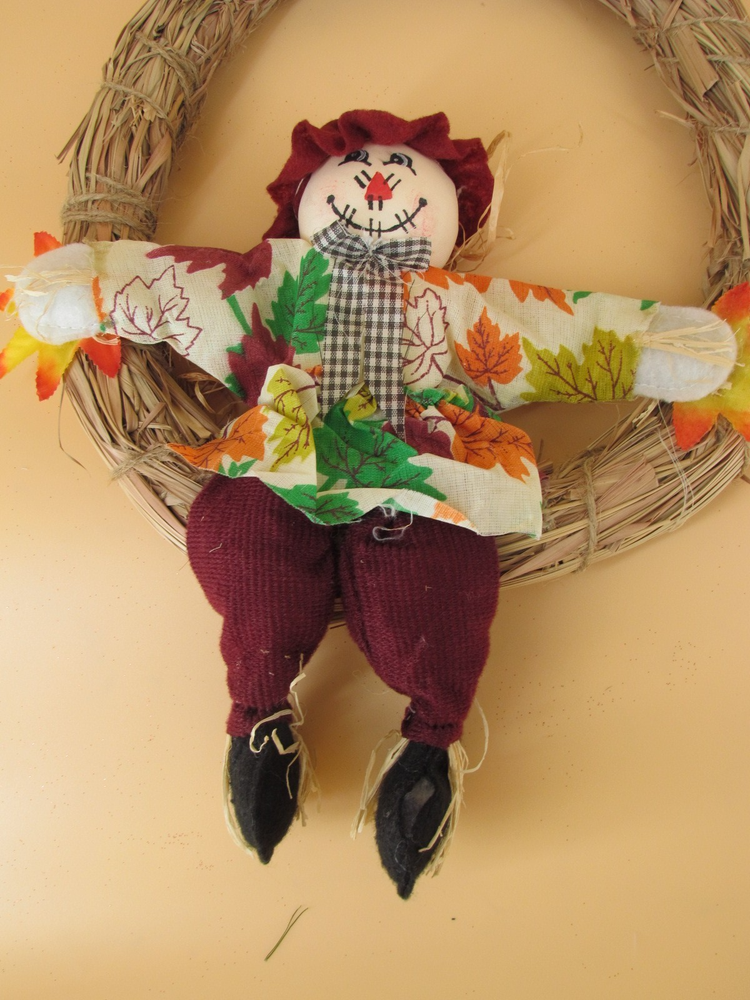 VTG 12-Inch Straw Wreath with Fall Leaves for Seasonal Decor