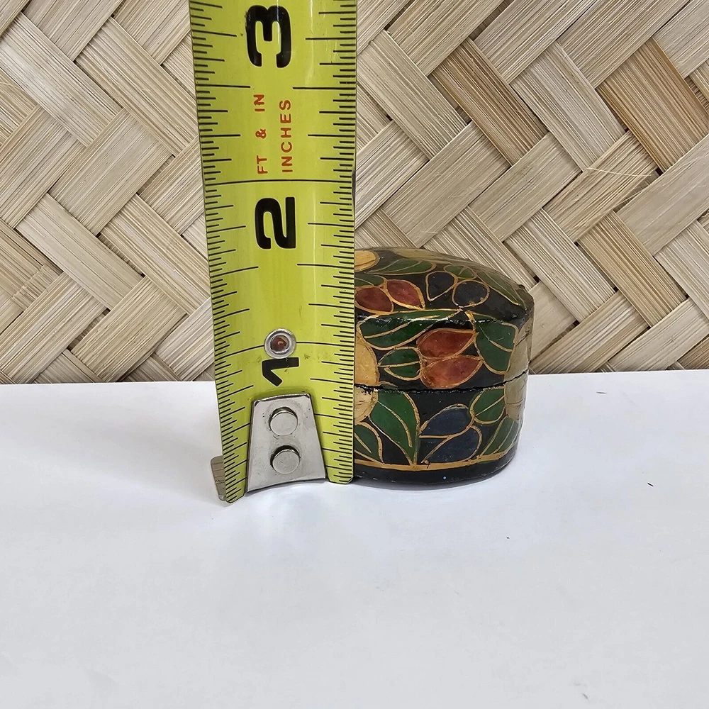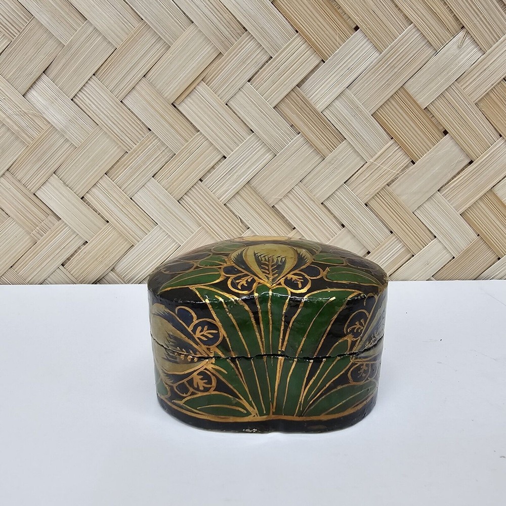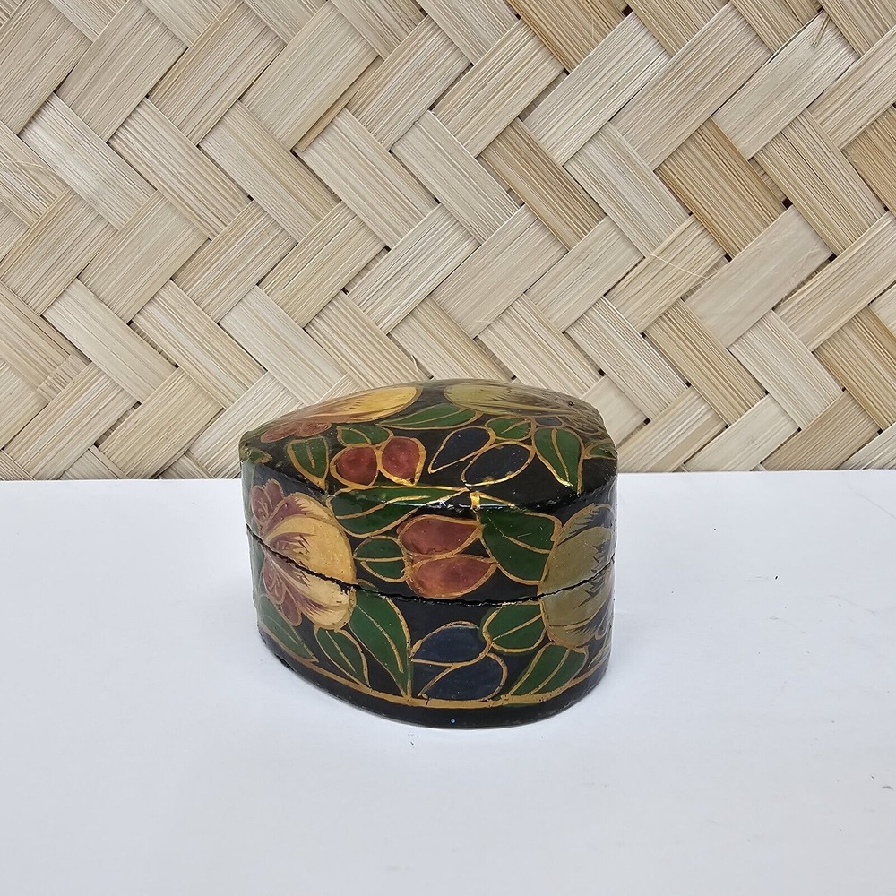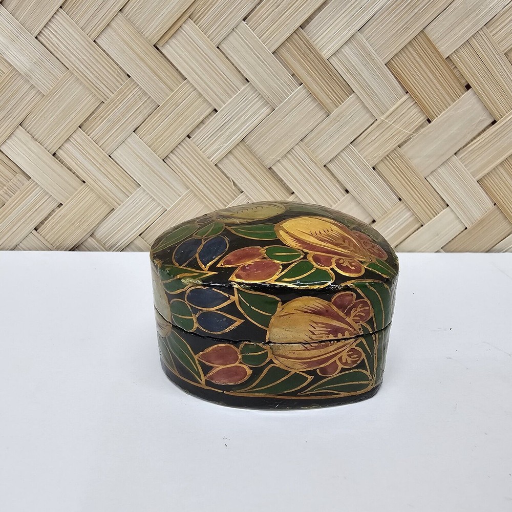 Beautifully painted vintage laquer box. Please see all pictures for condition, details and measurements. If you have questions or would like more photos, I'm happy to help. Listing and template services provided by inkFrog