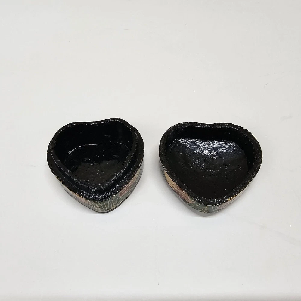 VTG Hand-Painted Black Lacquer Heart Shaped Jewelry Box Smithsonian Collection