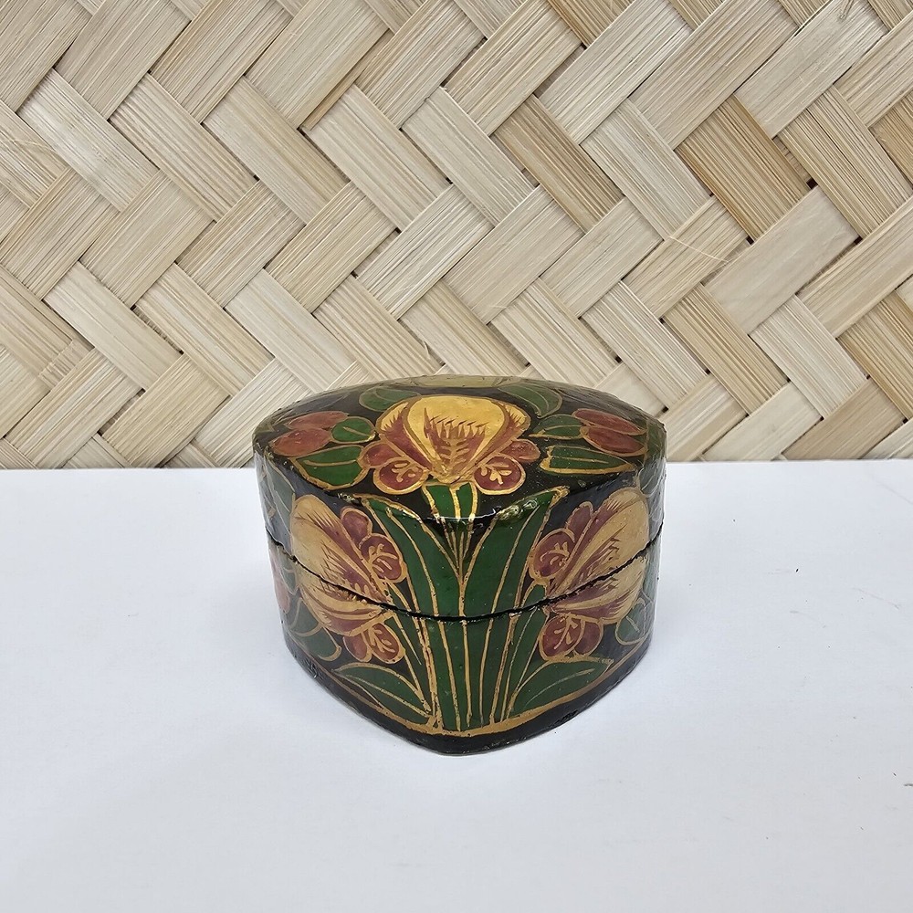 California Prop 65 Warning: NA Features: Boxed Packaging: Box Original/Reproduction: Original Theme: floral Item Height: see pictures Item Width: see pictures Collection: Keepsake Boxes Size: Small Shape: Heart Country/Region of Manufacture: Unknown Material: Mixed Materials Brand: Smithsonian Type: Trinket Box Item Length: see pictures Subject: Boxing Pattern: Flower Occasion: All Occasions Color: Multicolor Room: Any Room Finish: Laquered