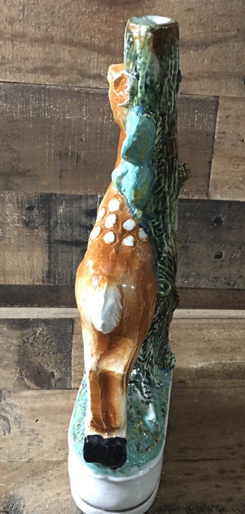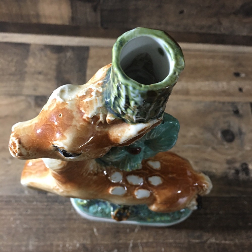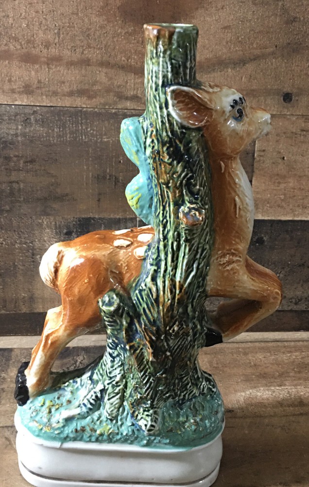 Vintage Candle Holder Made In Italy Deer Fawn Nature Hand Painted 11.5”.