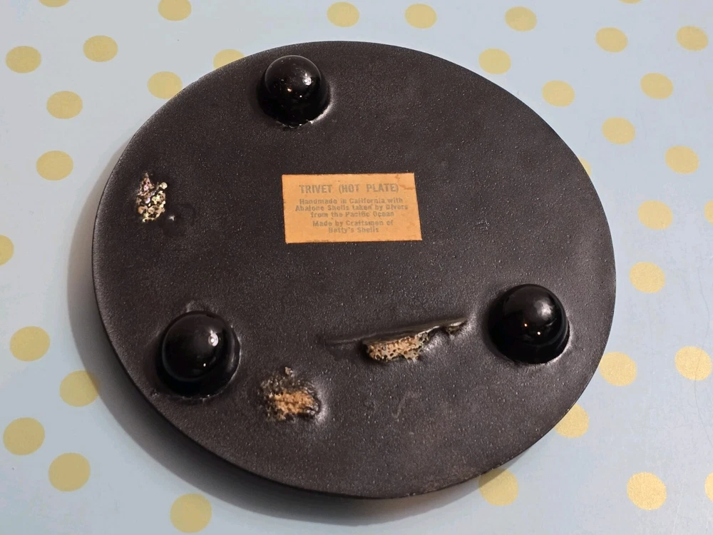 Featured Refinements: Vintage Trivet Original/Reproduction: Original Brand: Betty's Shells Style: Mid-Century Modernism Pattern: Shells Size: Small Material: Lucite, Abalone Type: Trivet Country/Region of Manufacture: United States Item Diameter: 5.5" Shape: Round Color: Multicolor Modified Item: No