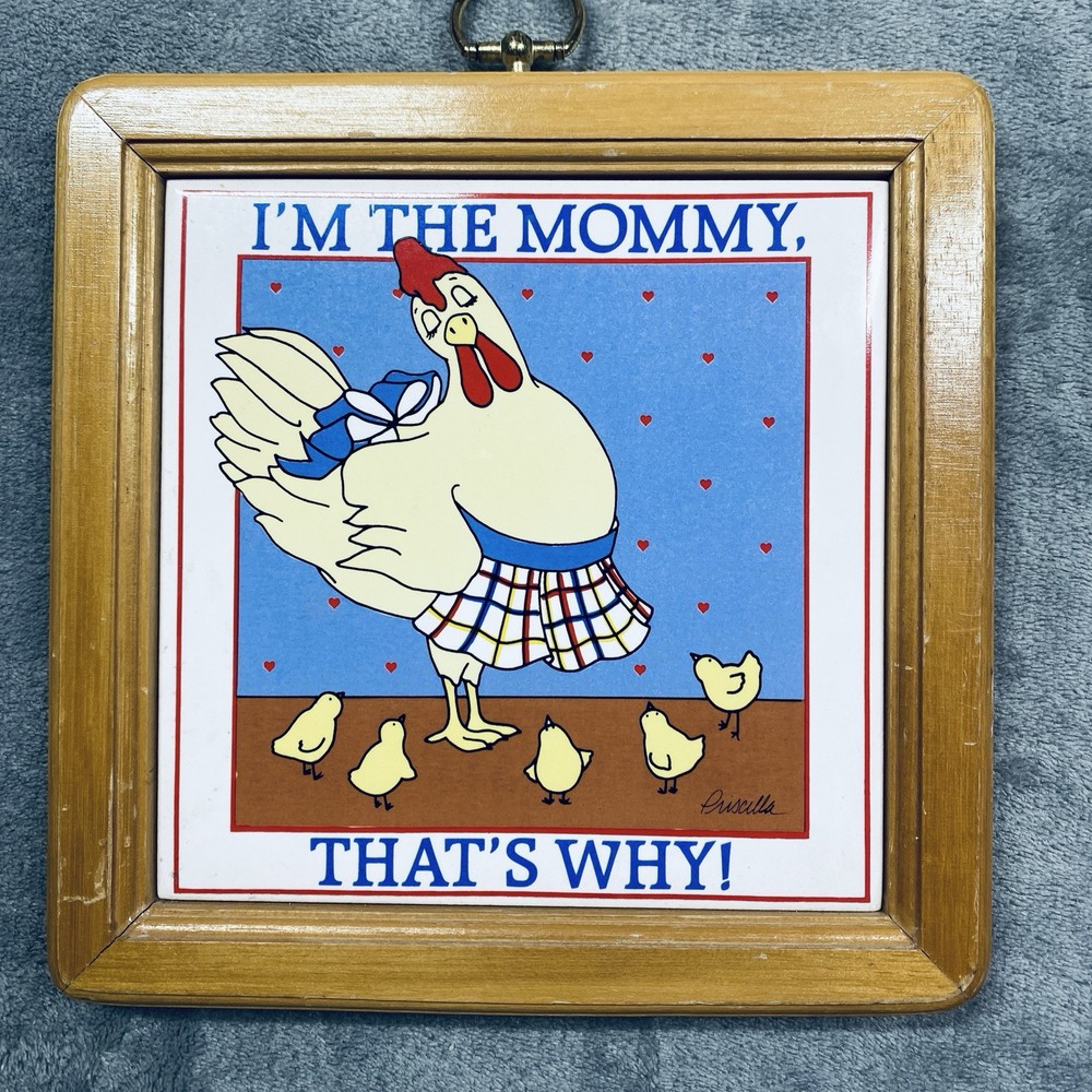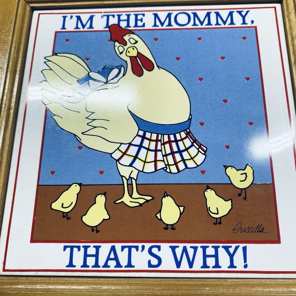 VTG I'm The Mommy That's Why Tile Chicken Farmhouse Kitschy Framed Wood Wall Art