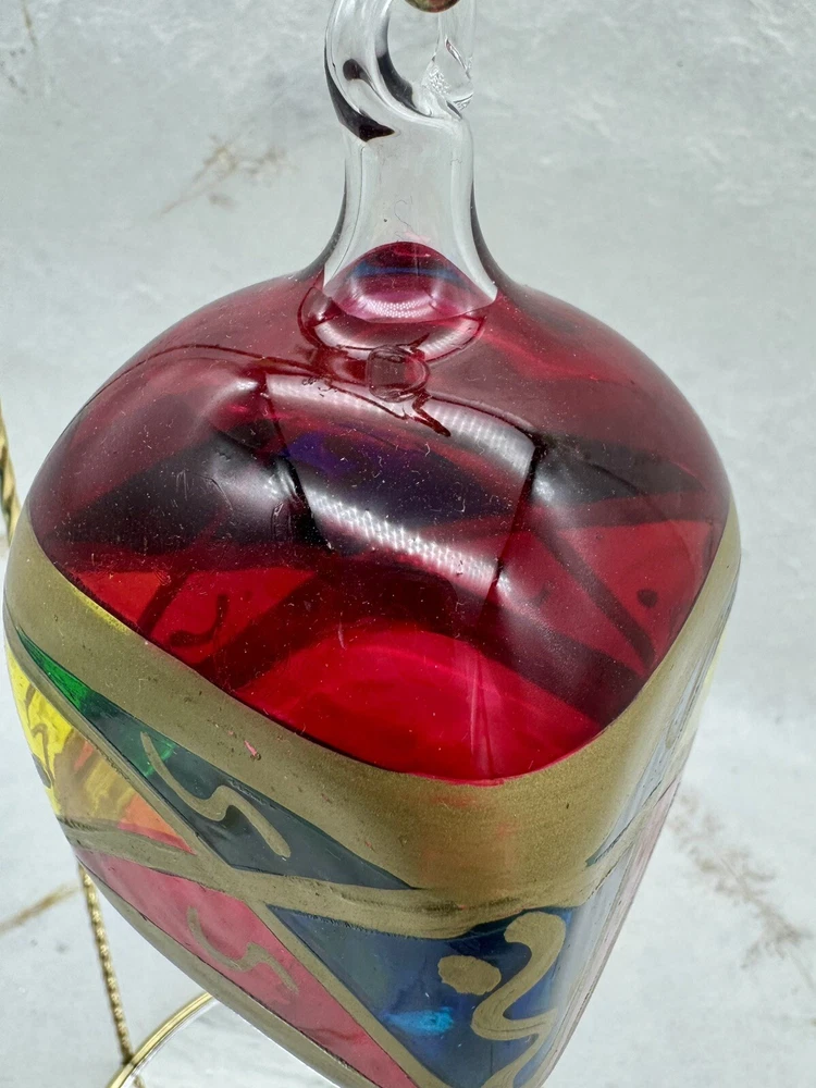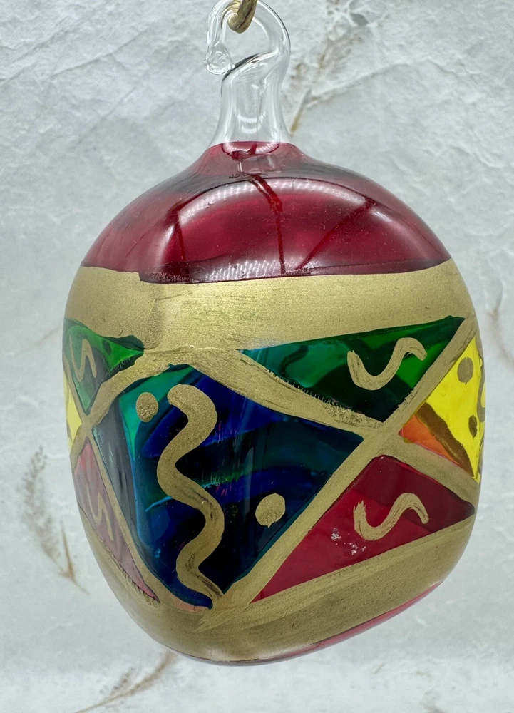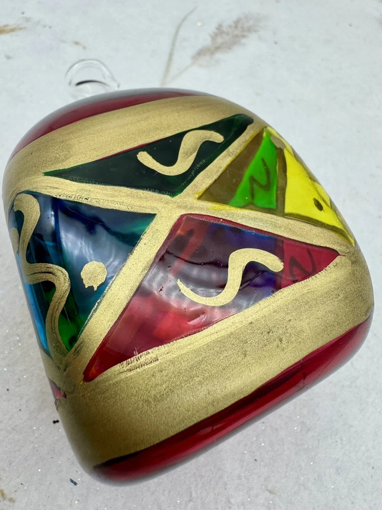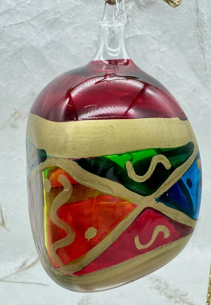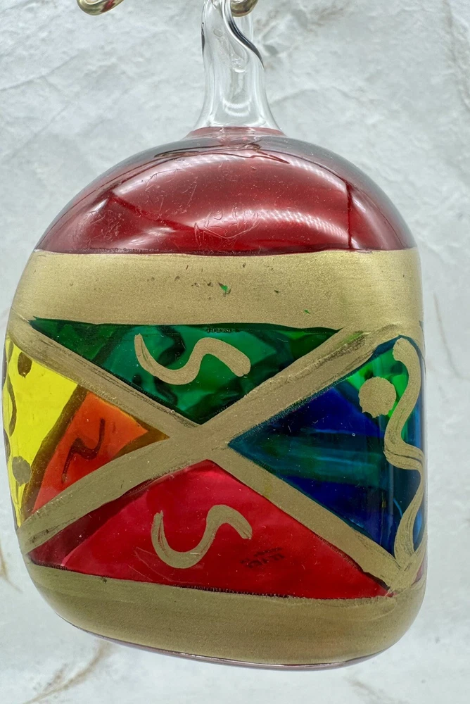 π Add a touch of vintage charm to your holiday decor with this handcrafted Italian glass Christmas ornament. π Featuring a unique stained glass style and hand-painted design, this medium-sized ornament measures 4.5" in height and 2.5" in width. π The diamond pattern and square shape make it a perfect addition to your Christmas collection. π Made from high-quality glass and produced using hand-blown techniques, this original vintage ornament is a true work of art. π The red and multicolored color and art nouveau style give it a holiday theme that will complement any Christmas tree. π This ornament is a must-have for collectors and those who appreciate handcrafted beauty. π Nice preowned vintage condition. No cracks or chips. π Please view photos for closer inspection and more details. Thanks for shopping π