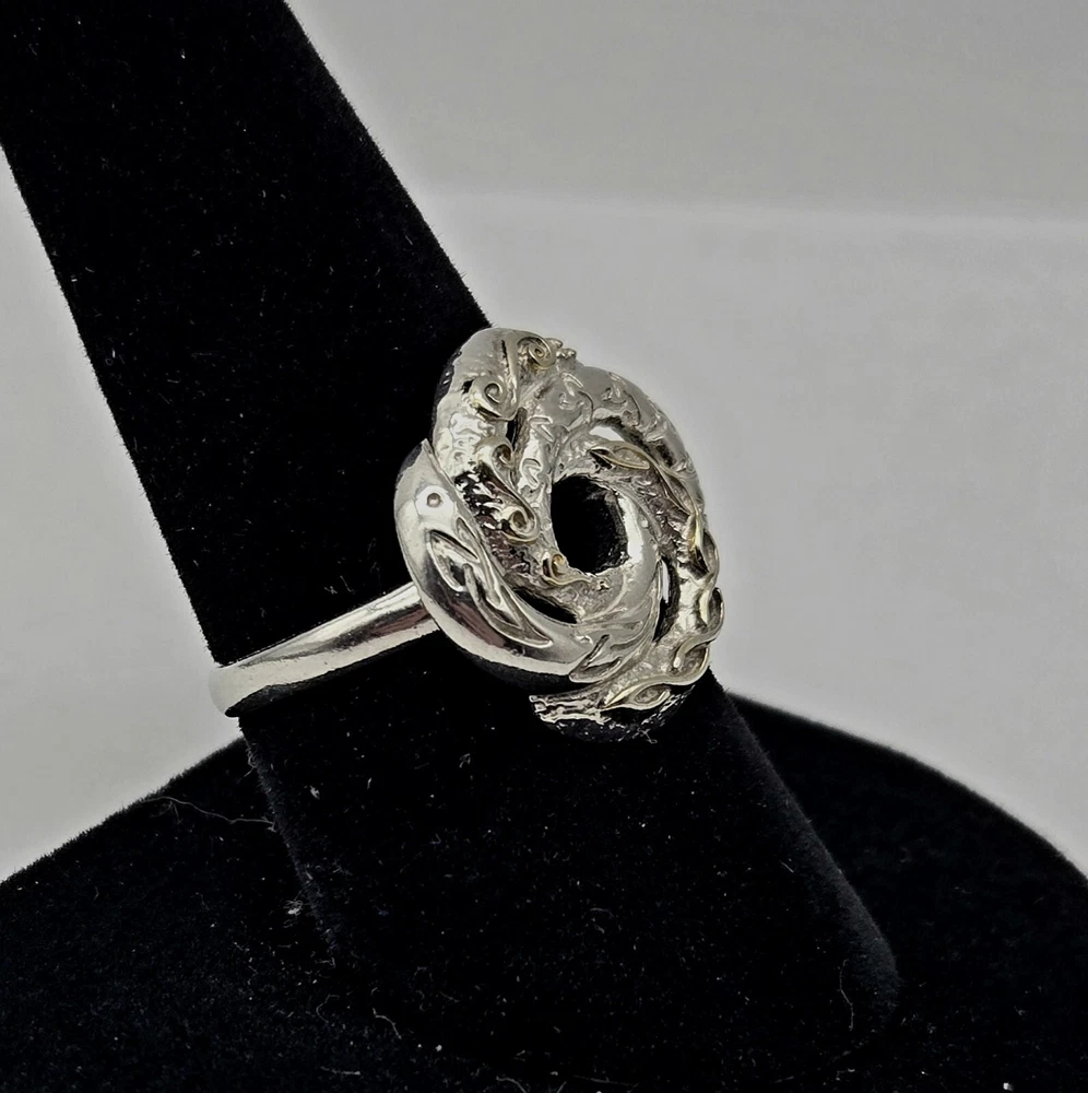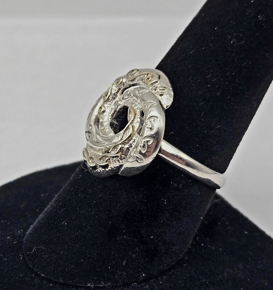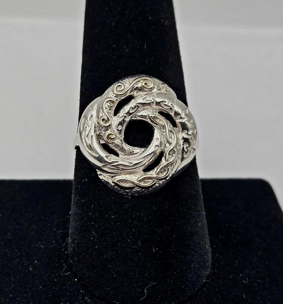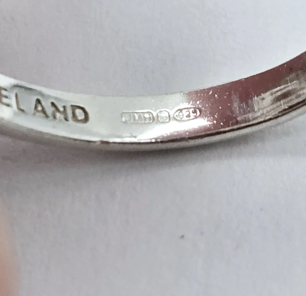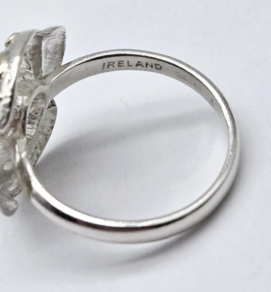 Ring Size:8Type:RingColor:SilverBase Metal:Sterling SilverCountry/Region of Manufacture:IrelandMain Stone Shape:RoundMetal Purity:SilverCountry of Origin:IrelandModel:RingTheme:Beauty, Fairytale & Fantasy, LuckMaterial:Sterling SilverStyle:CelticMain Stone:No StoneShape:RoundSigned:YesMetal:Sterling SilverBrand:JMHVintage:Yes