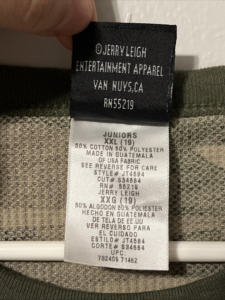 Brand: Jerry Leigh Color: Green Vintage: Yes Performance/Activity: School, Walking Country of Origin: United States Character: Army Style: Basic Pattern: Camouflage Department: Girls gtin13: Does not apply Theme: American, Army Size: 2XL Type: T-Shirt Material: Cotton, Polyester Character Family: Army Fit: Regular Neckline: Round Neck UPC: Does not apply Sleeve Length: Long Sleeve