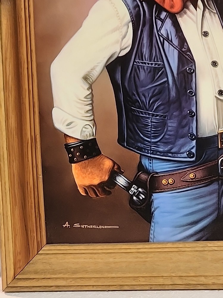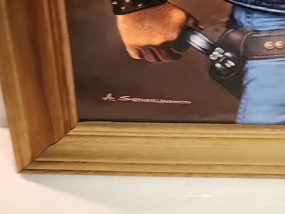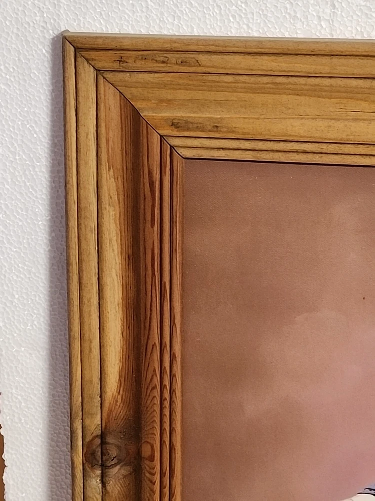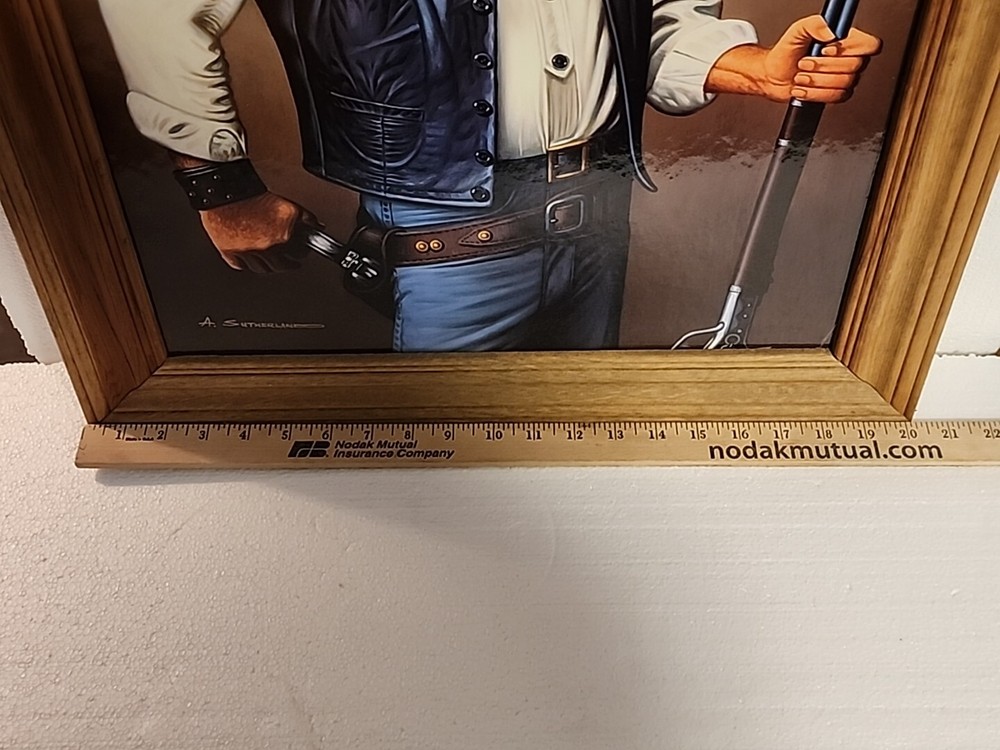 Print or poster? Not sure what to call this. About 16x20" actual print...frame makes it 20x24.5 inches ...see pictures. Corner in far right has kink. Frame real wood...knotty gives the rustic look n of course, John Wayne. From smoke free home of my grandparents farm home. Estate cleaning.