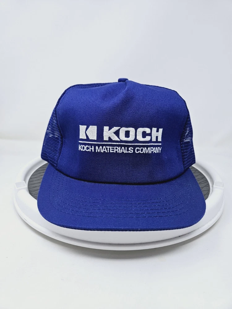 VTG K-Products 80s Koch Materials Co Blue Snapback Patch Hat Mesh Made In USA