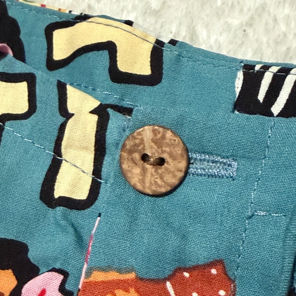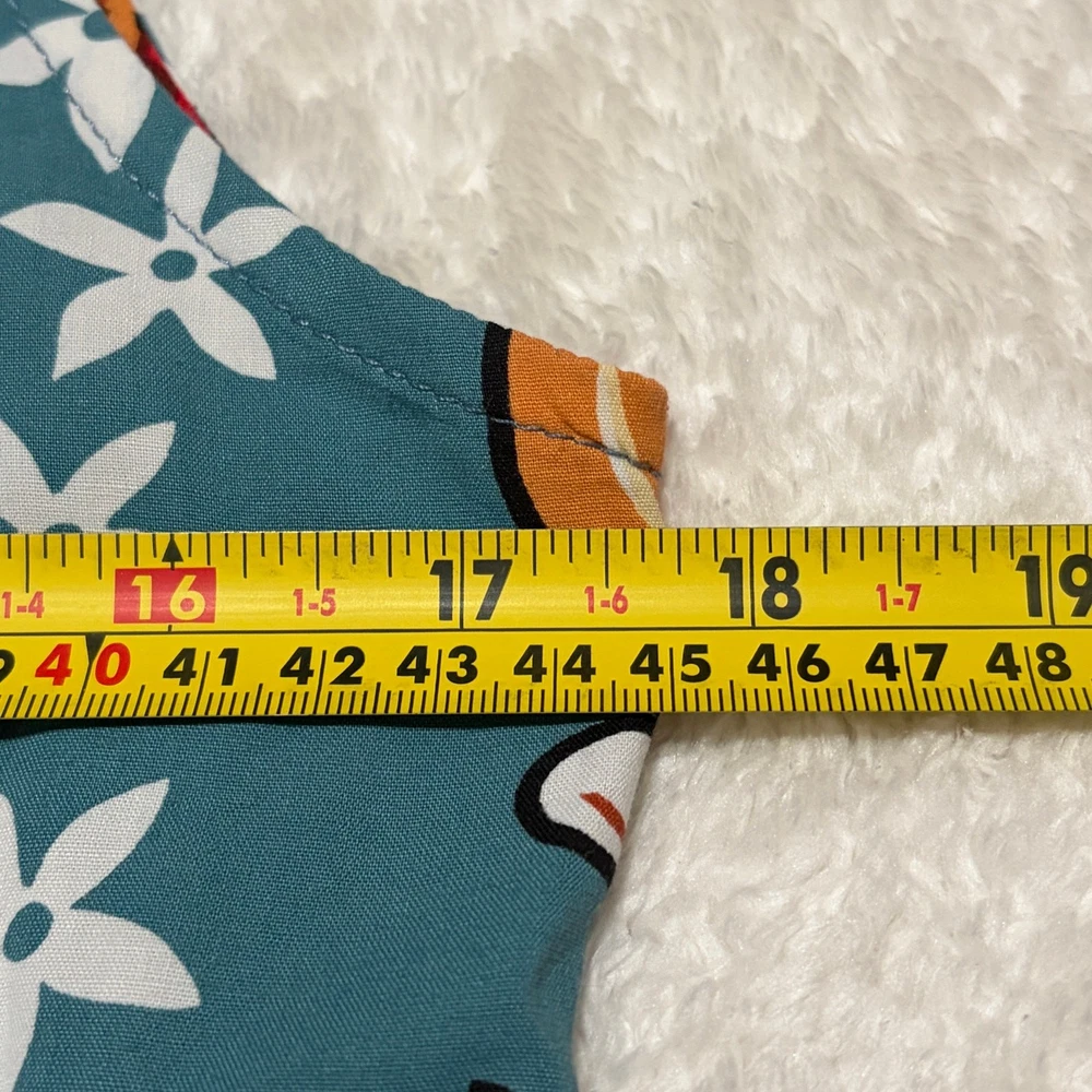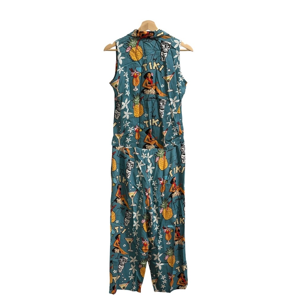 Features: Top - Brand: Kahala - Size: Small - Color: Multicolor - Era: Vintage - Style: Sleeveless, Collared, Button front, Allover print - Material : 100% rayon Measurements: Pit to pit: 17.75 Front length: 21" Shoulder: 12" Features: - Brand: Kahala - Size: 8 - Color: Blue - Era: Vintage - Style: Cropped length, Zip fly with drawstring, Allover print, Wide leg - Material : 100% rayon Measurements: Waist: 31" Inseam: 23.5" Rise: 10.5" Leg Opening: 10.5"