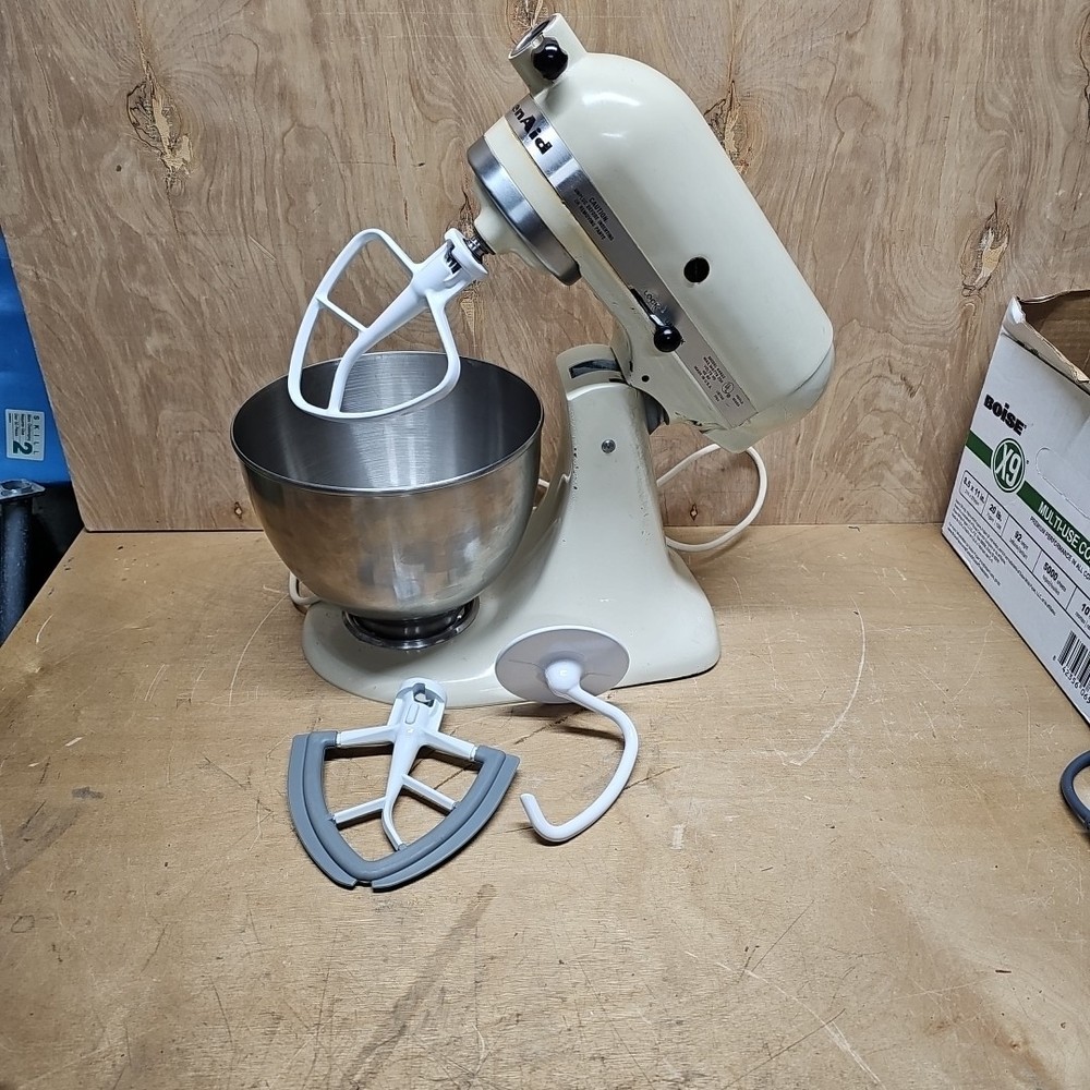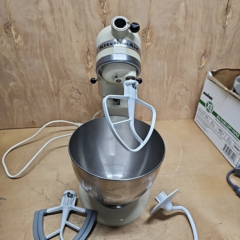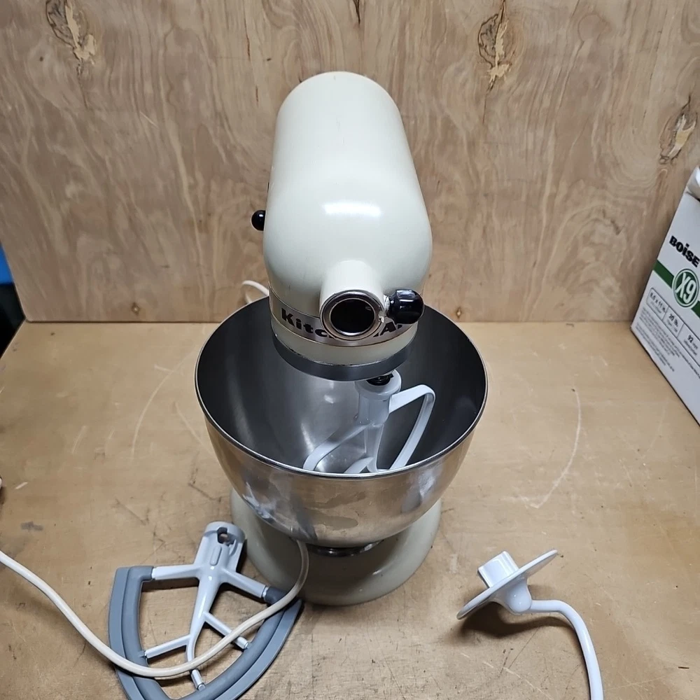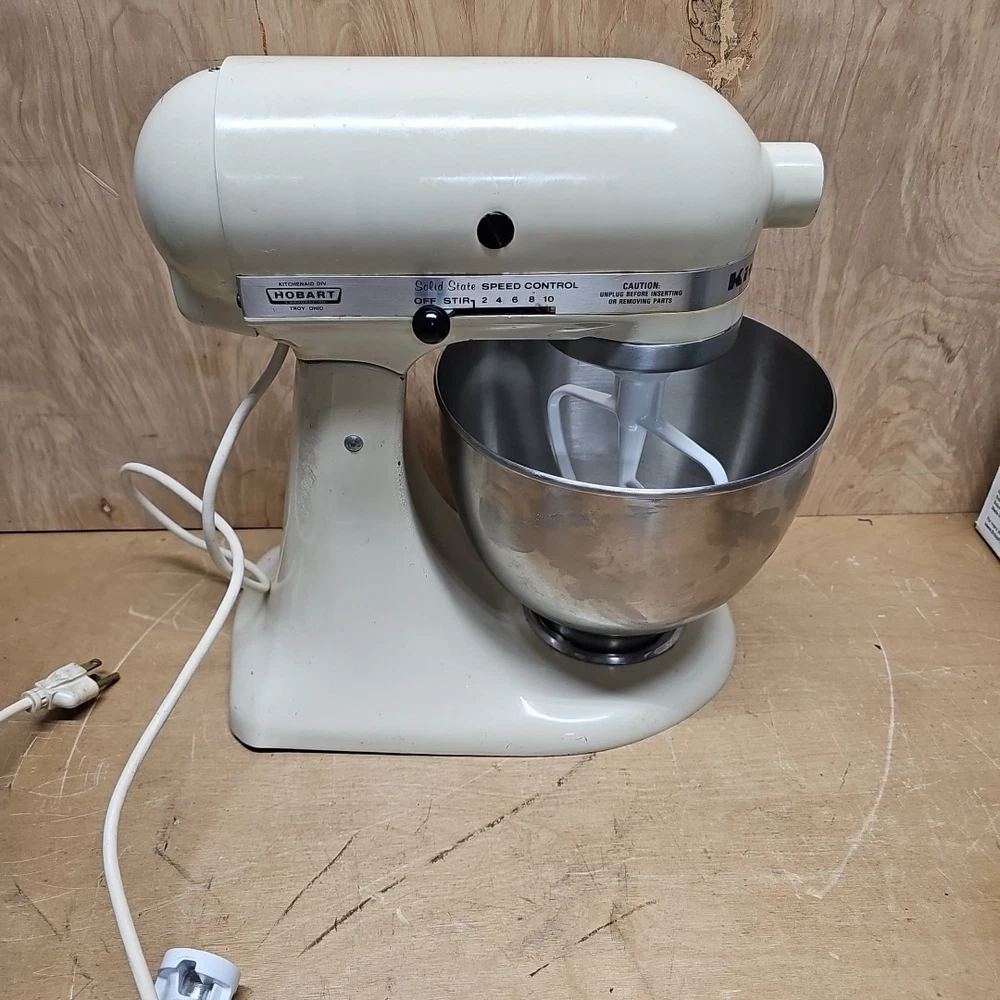 VTG KitchenAid Hobart K45SS Stand Mixer Cream with Bowl & Attachments Tested Works