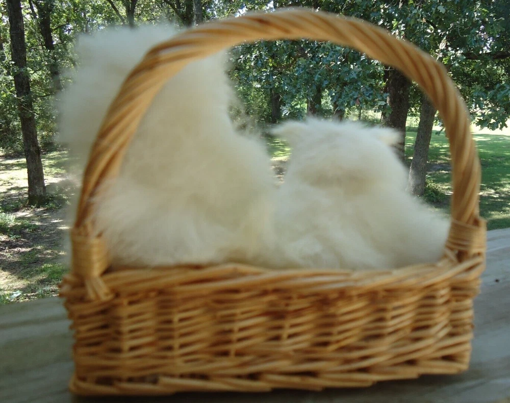 VTG Kittens Cats Wicker Basket Realistic Soft White Fur Glass Eyes Lifelike Mini