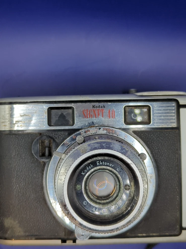 For sale is this vintage Kodak Signet 40 Camera with Synchro 400 Shutter Lens. This camera DOES NOT WORK. For parts, project or display only. Good condition, minor wear consistent with age and use, see photos.