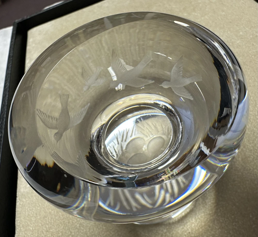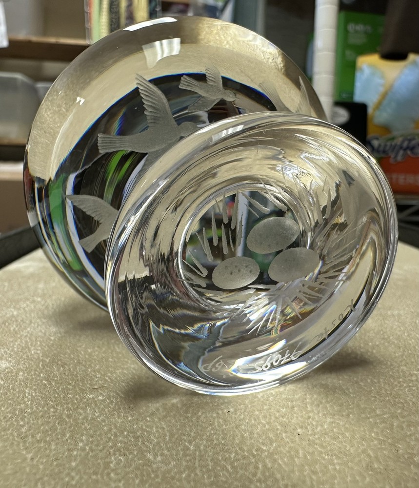 Features: Etched Type: Paperweight Brand: Kosta Boda Theme: Birds Production Style: Art Glass Color: Clear Material: Glass Seller Notes: “Beautiful” Vintage: Yes