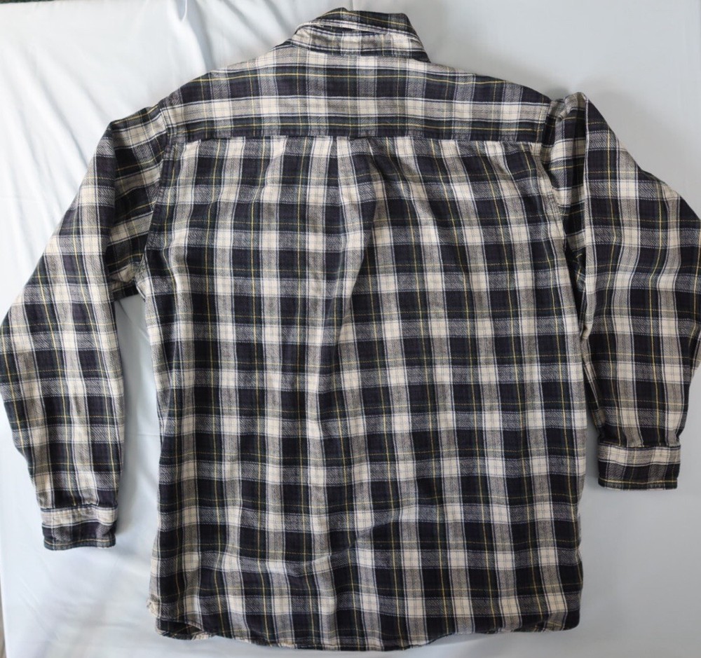 VTG LL Bean Men’s Large Blue Cream Plaid 100% Cotton Flannel Button Shirt