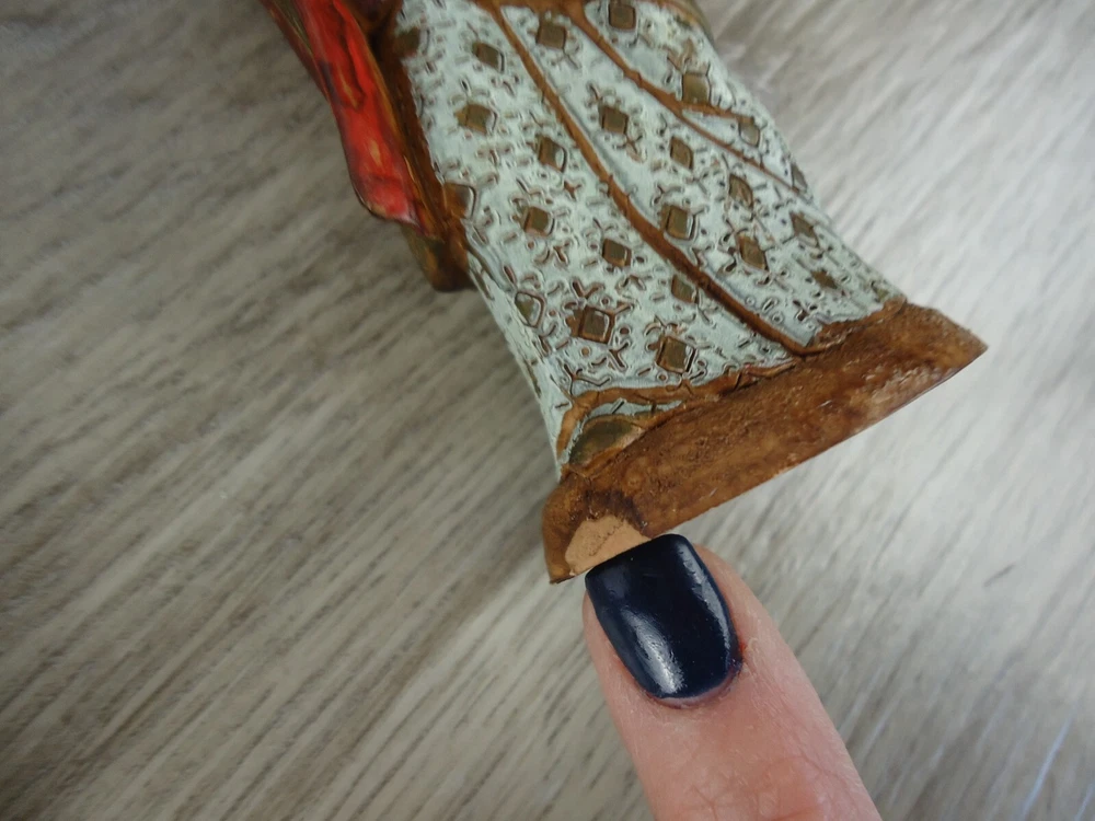 VTG Landi 10 pc. Nativity Figures Christmas Holiday Decoration Made In Italy There is a piece of "straw" on the side of the manger that is broken. There is a bit broken off of the base of one of the wisemen. These are both shown up close and pointed out in the pictures.