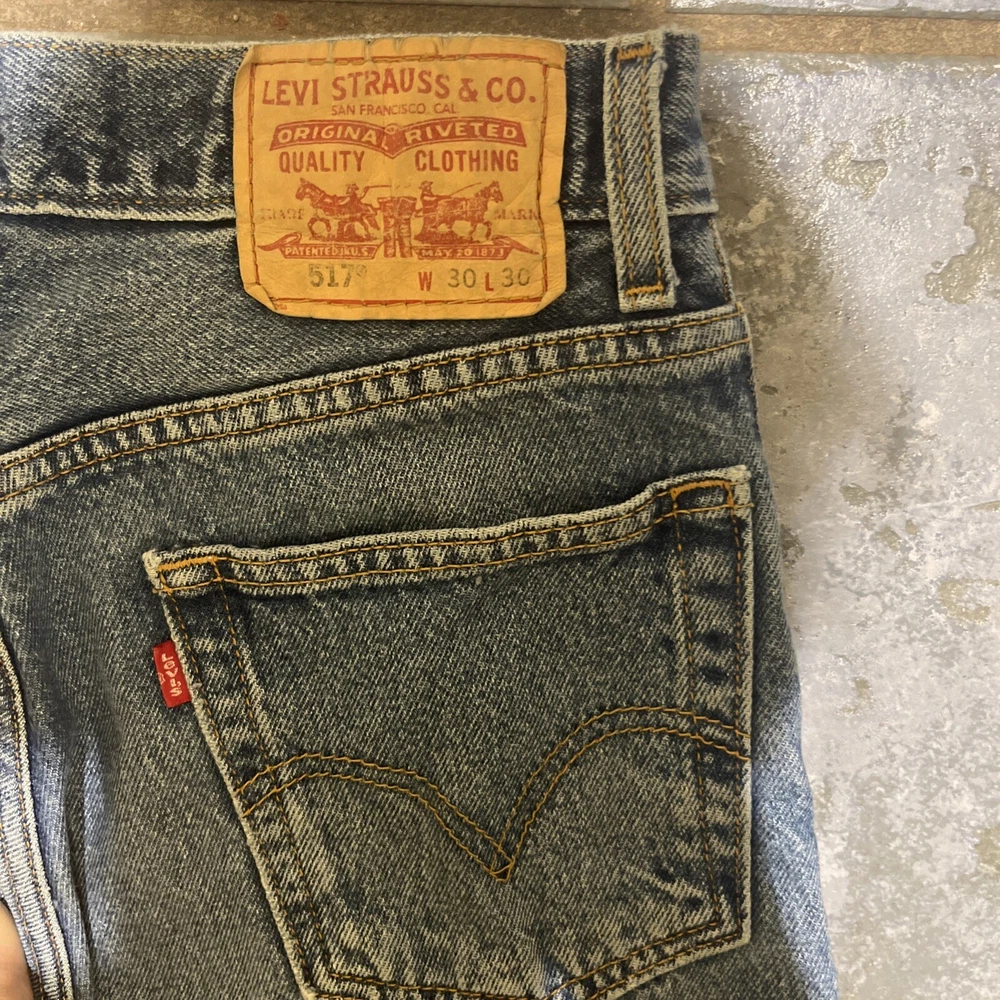 VTG Levis 517 Jeans Men 30x30*28x28* Bootcut Pants Light Wash Y2K Faded Whiskers Lay flat measurements Waist- 28 in Rise- 10.5 in Inseam-28 in 100% cotton **In good pre owned condition. Some distressing in the inner thigh area. Please see photos** Comes from a smoke free home
