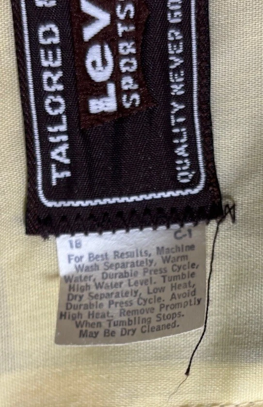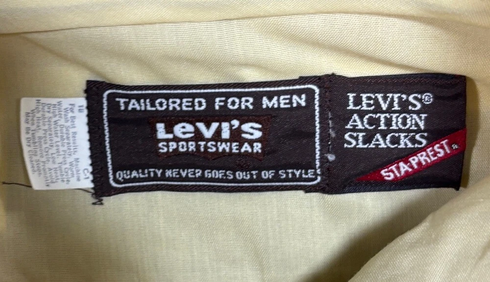 Vintage 70’s Levi's Action Slacks Sta-Prest Brown Polyester Pants Men’s 34x33 ***Small signs of wear, final 3 photos are close ups: a couple of stains on the seat and one on the leg.*** Otherwise, EUC Pre-Owned. Please refer to photos for the most accurate measurements, description, and estimation of the item's condition. We’re happy to answer any questions or provide additional photos before purchase if requested! All items are sold as is and we try our very best to note any issues with condition in both our description and close up photos. Please remember that colors can look different across different devices and monitors. FAST SHIPPING! Orders are usually shipped within 24 hours M-F Friday orders will ship Monday morning at the latest, unless there is a postal holiday. Feel free to send us a message before purchase if you?d like a certain delivery service or combined shipping offers. Condition: Please see photos for measurements. Any further measurements needed? Just ask! ***Small signs of wear, final 3 photos are close ups: a couple of stains on the seat and one on the leg.*** Otherwise, EUC Pre-Owned: shows minimal to no signs of wear, as expected with typical well cared for use such as slight fading of colors with age. Please make sure to double check measurements for the best representation of fit, as brands can vary in sizing. Comes without sales tags, dust bag, or brand box. Will it Fit Check? Please reference the listed measurements (in photos and/or text) before purchasing. Fit check tip: Grab your favorite similar style item at home, lay the garment on a flat surface, and measure shoulder to shoulder, the width (armpit to armpit), and length (top to bottom). Then compare your measurements to those in our listing! If you need any further measurements not noted in the listing, please feel free to request, we will get back to you asap. Still got Questions? Send us a message! We do our best to accurately and thoroughly represent each item in images and condition description, but, if there's any further information you'd like before purchasing or have a shipping request, please don't hesitate to ask and we'll get back to you asap. RETURN POLICY: Please reach out prior to purchase with any questions or shipping requests. Returns are accepted within 30 days, buyer pays return shipping. Refund issued upon receipt of item in original condition. Full refund (minus original shipping) will be issued once we receive the item assuming it is in the exact same condition as it was shipped.(Clean, unaltered, tags still attached if item was new with tags, etc.) We request that you select "Item does not fit" when returning an item that does not fit. Thank you for shopping small and supporting our lil' Rodeo!