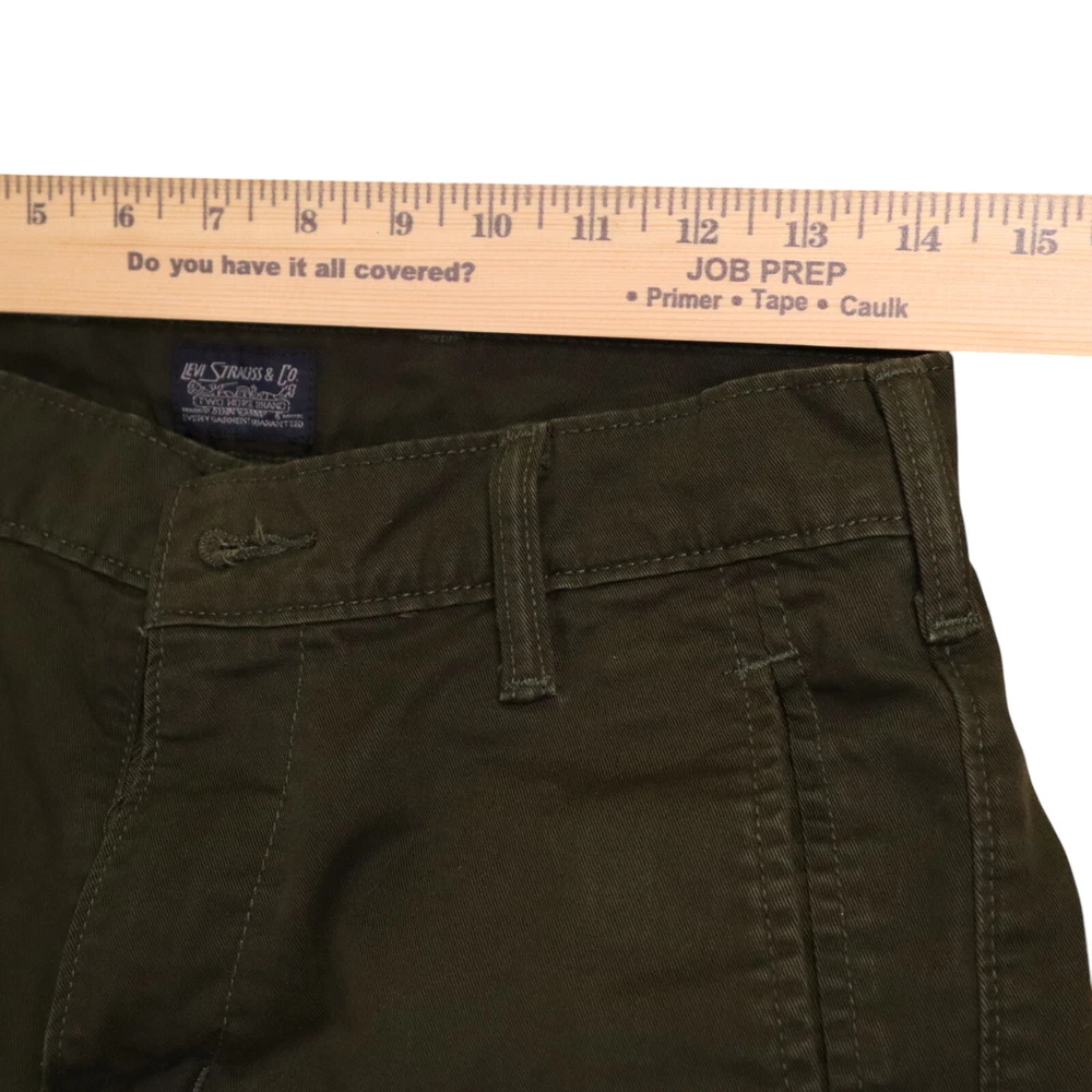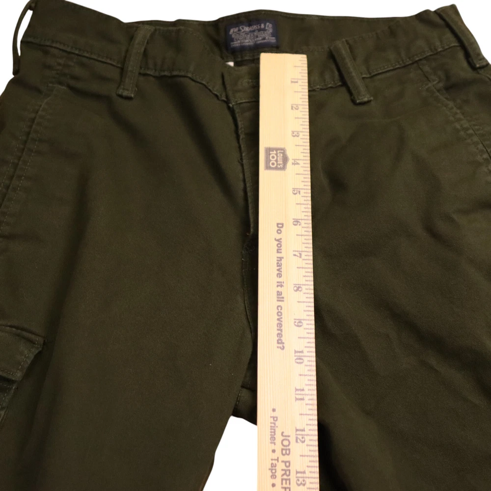Inseam: 30 in Country/Region of Manufacture: Bangladesh Accents: Button, Logo, Zipper Style: Cargo Leg Style: Tapered Type: Pants Personalize: No Closure: Button, Zip Pocket Type: 5-Pocket Design, Cargo Pocket, Slash Pocket Waist Size: 29 in Fit: Relaxed Size Type: Regular Rise: Mid (10-12 in) Features: Comfort, Easy Care, Pockets Vintage: No Brand: Levi's Handmade: No Color: Green Garment Care: Machine Washable Pattern: Solid Theme: 90s, College, Hip Hop Season: Fall, Spring, Summer, Winter Fabric Type: Canvas Occasion: Business, Casual, Formal, Party/Cocktail, Travel, Wedding, Workwear Department: Men Size: 29 Material: Cotton Front Type: Flat Front