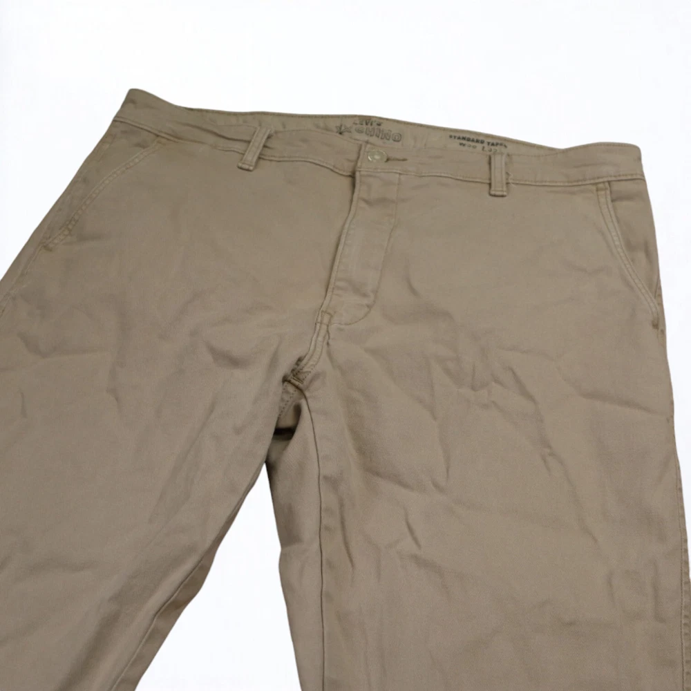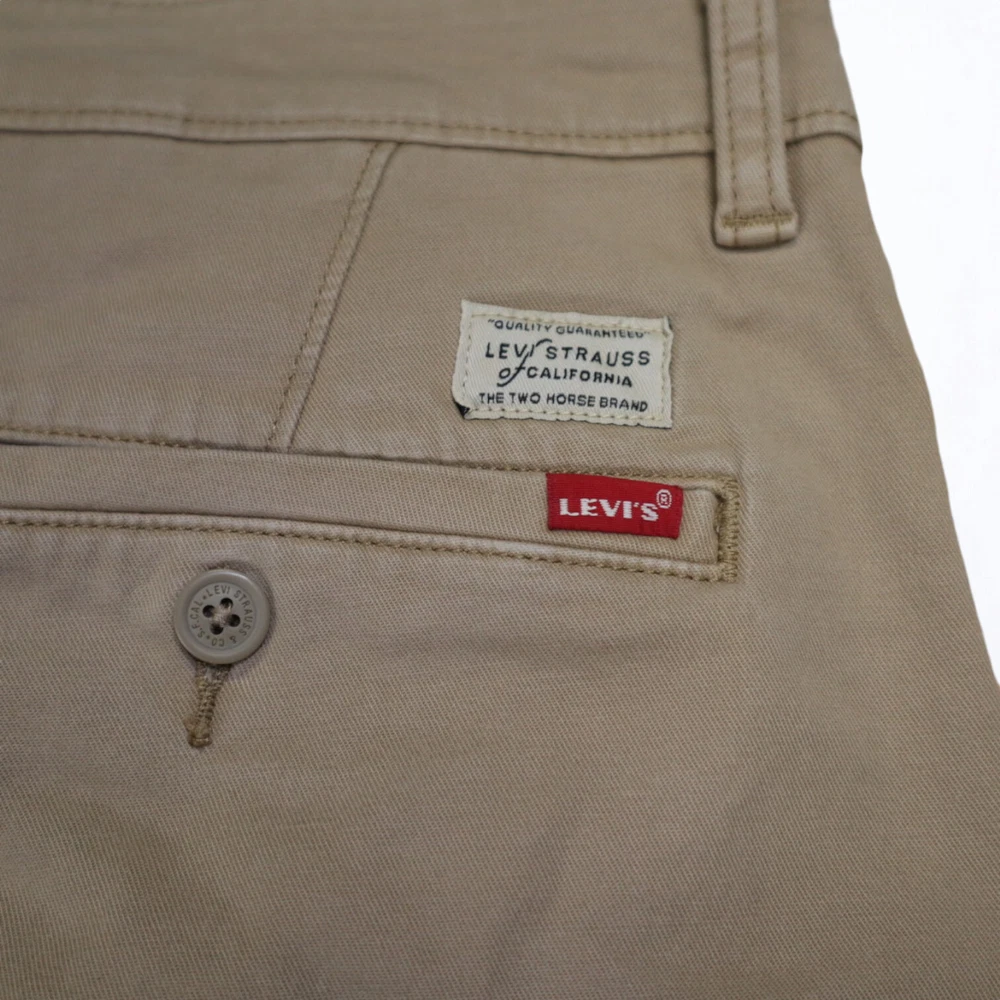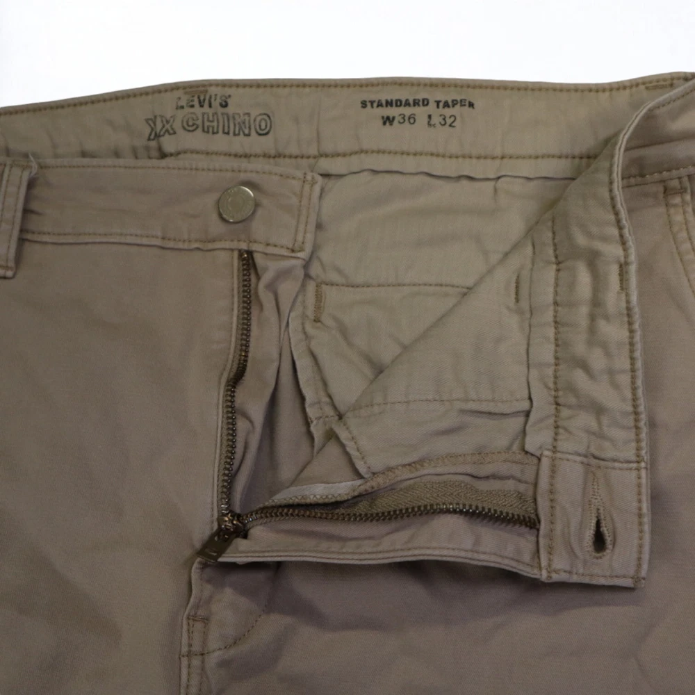 Personalize: No Inseam: 32 in Accents: Button, Embroidered, Logo, Zipper Brand: Levi's Leg Style: Tapered Garment Care: Machine Washable Season: Fall, Spring, Summer, Winter Material: Cotton Waist Size: 36 in Color: Brown Pocket Type: Slash Pocket Handmade: No Features: Comfort, Easy Care, Pockets, Stretch Pattern: Solid Size: 36 Fabric Type: Denim Size Type: Regular Front Type: Flat Front Theme: 80s, 90s, Hipster, Logo, Preppy, USA Occasion: Business, Casual, Formal, Party/Cocktail, Travel, Workwear Type: Pants Department: Men Vintage: Yes Fit: Regular Style: Chino Closure: Button, Zip