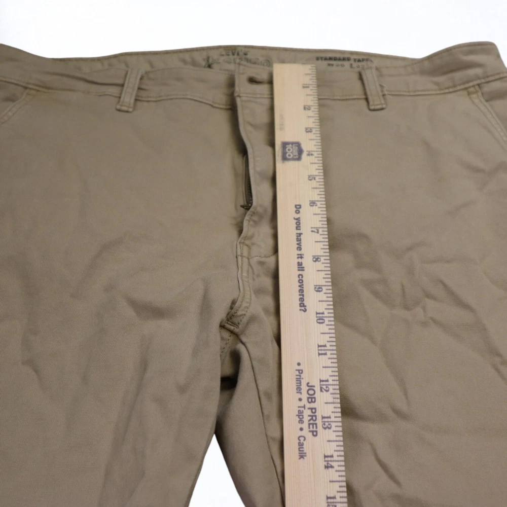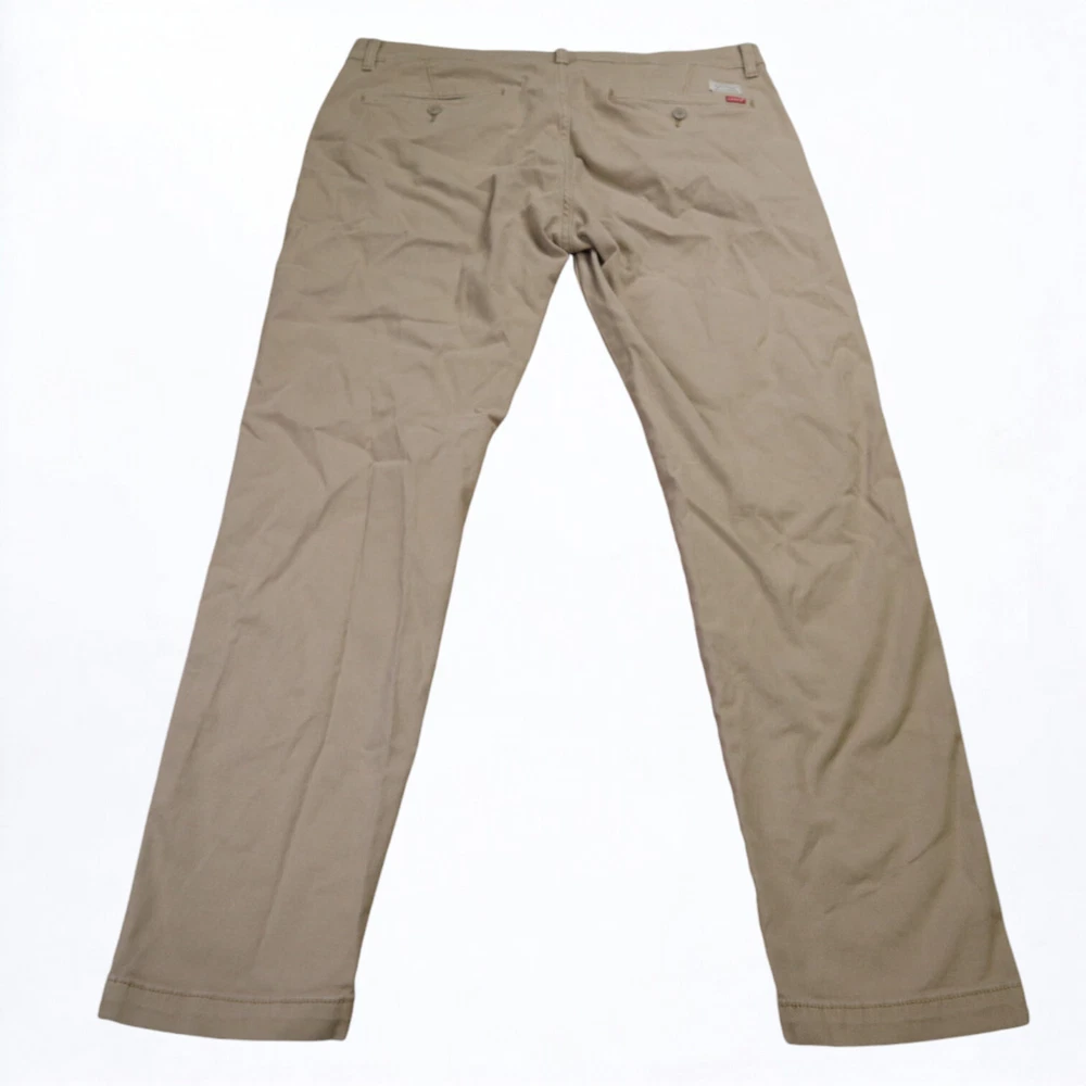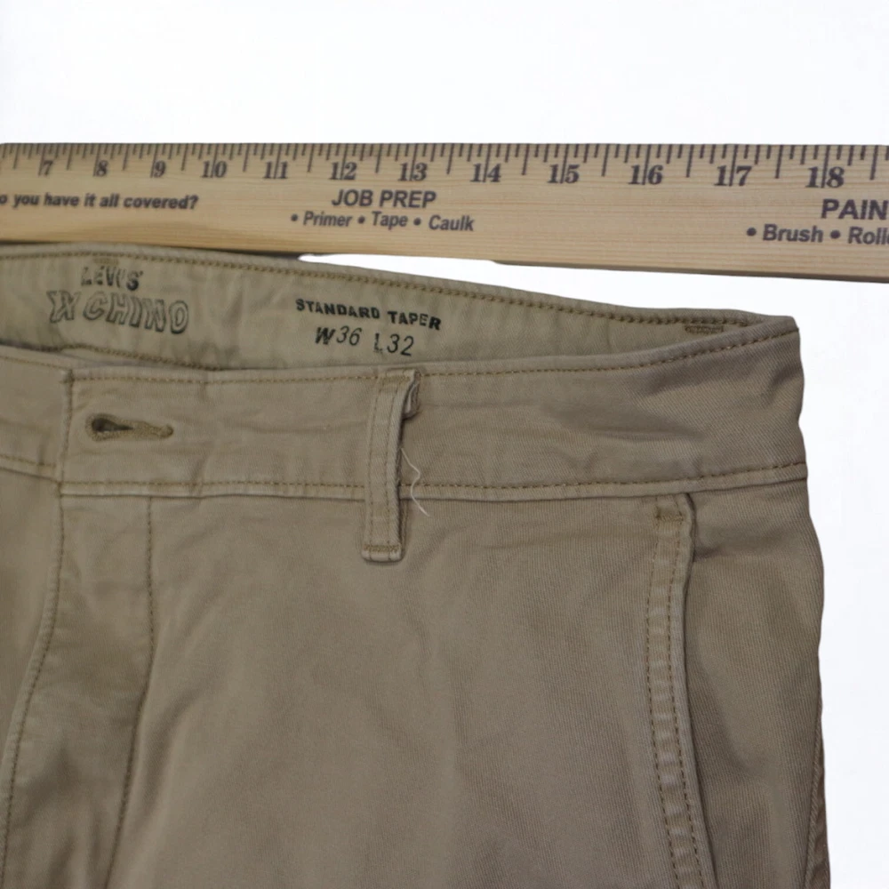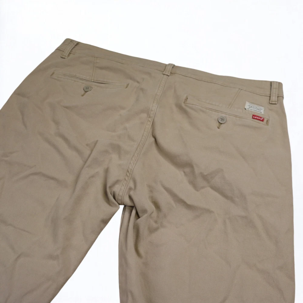 Personalize: No Inseam: 32 in Accents: Button, Embroidered, Logo, Zipper Brand: Levi's Leg Style: Tapered Garment Care: Machine Washable Season: Fall, Spring, Summer, Winter Material: Cotton Waist Size: 36 in Color: Brown Pocket Type: Slash Pocket Handmade: No Features: Comfort, Easy Care, Pockets, Stretch Pattern: Solid Size: 36 Fabric Type: Denim Size Type: Regular Front Type: Flat Front Theme: 80s, 90s, Hipster, Logo, Preppy, USA Occasion: Business, Casual, Formal, Party/Cocktail, Travel, Workwear Type: Pants Department: Men Vintage: Yes Fit: Regular Style: Chino Closure: Button, Zip