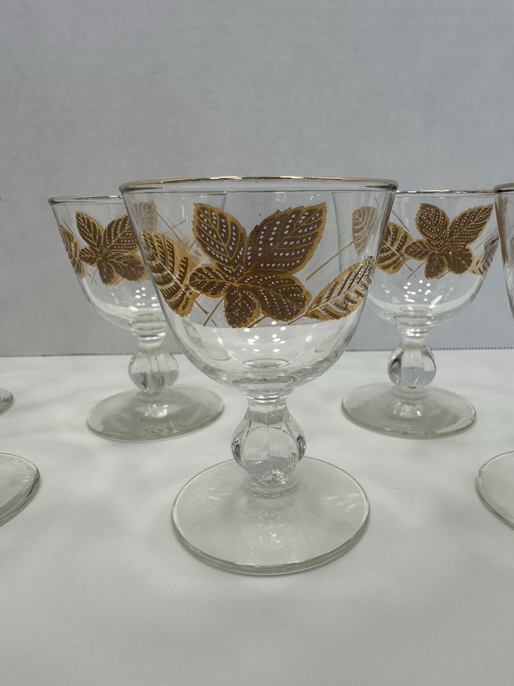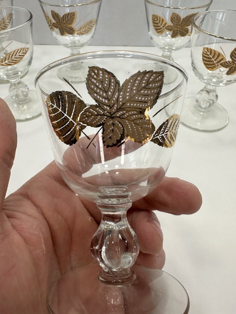 VTG Libbey Gold Leaf Liqueur Glasses Set of 6 Fall Leaves Design